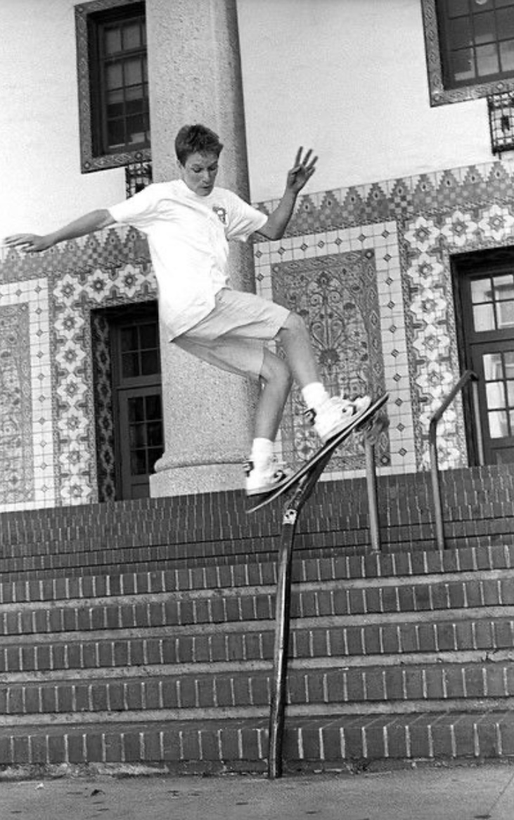 Natas is credited with the first person to point at handrails as a skateable thing. He famously tried to boardslide one off the stage at the Oceanside Street contest that I think was 85. The same one where Gonz 5050s the flat bar.