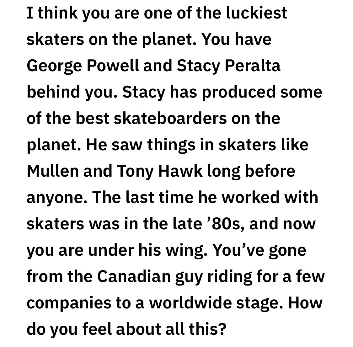 He’s an oddball. Weird square deck. Rides street in a helmet. But completely my number one favourite skater