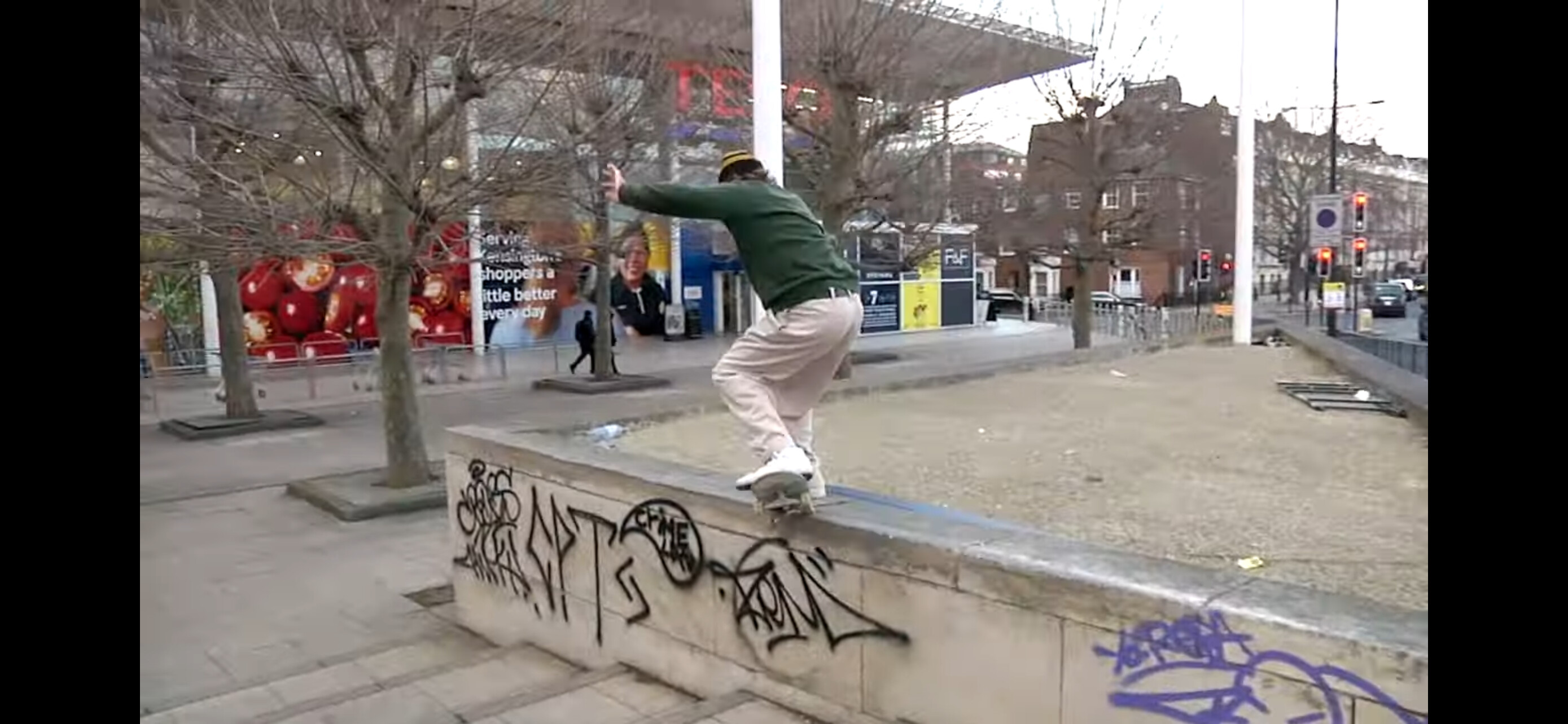 He does a half cab crook at Tesco in Hammersmith/Fulham and there is a reason you’ve probably never seen another trick on what looks like a decent ledge off stairs in London.