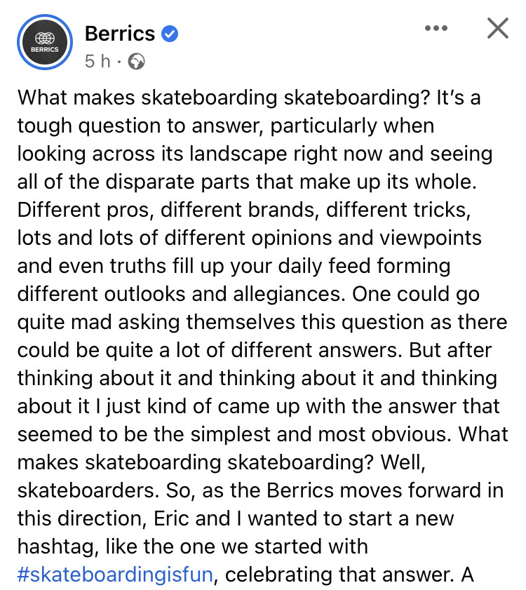 Five years without any influence is just a lie. Berra has been beefing with people via the Berrics insta on the regs for ages. He’s evidently had control of the Berrics insta.