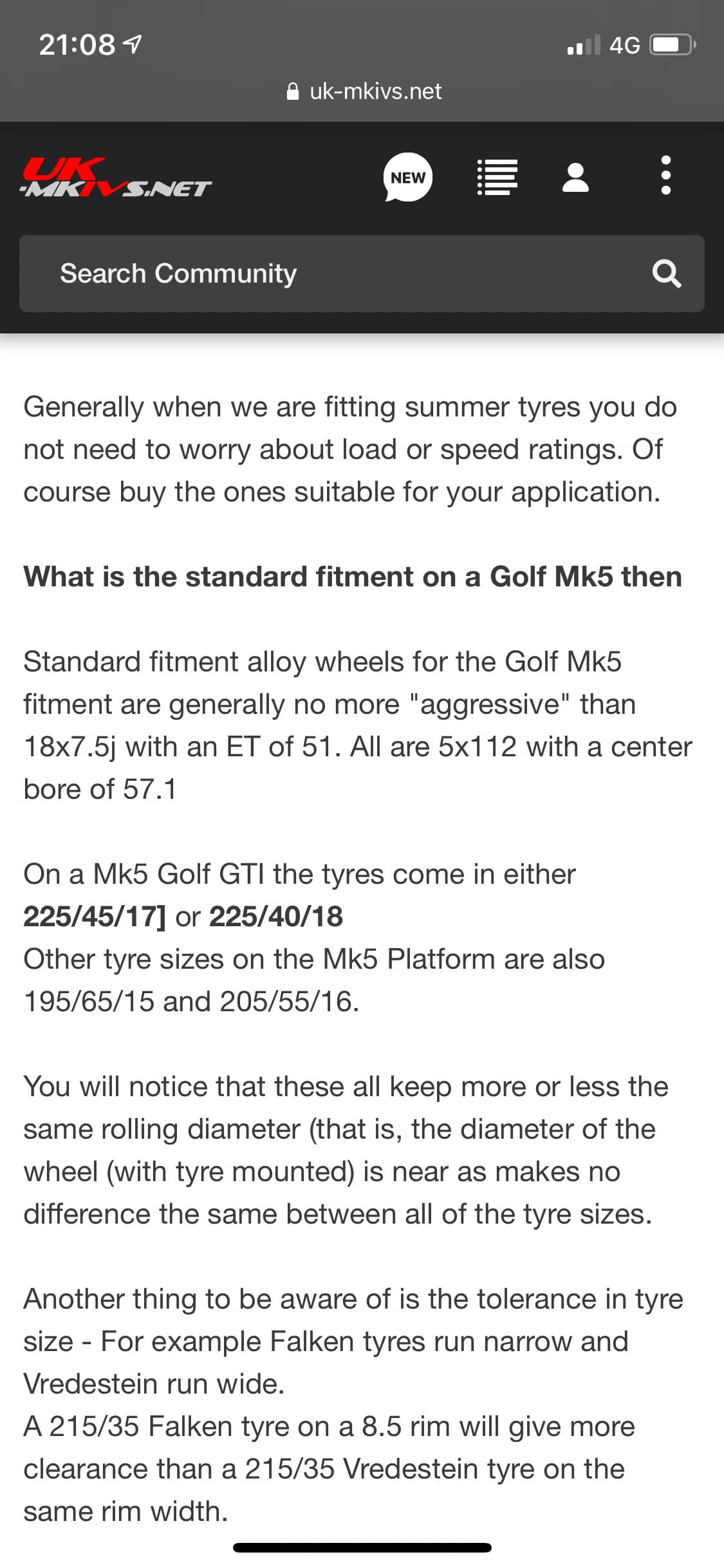 Then when it comes to tyres, one is size. So if you get 18s you’ll need a tyre that is R18. Then then there is profile and width. You’ve probably seen cars with stretched tyres where the tyre is stretched onto the wheel because it is too narrow for the wheel it’s being fitted to. And then profile you don’t want big balloon off road tyres on your pimping golf, but where ever you go should be able to recommend whats the best wheel/tyre combo for your car.