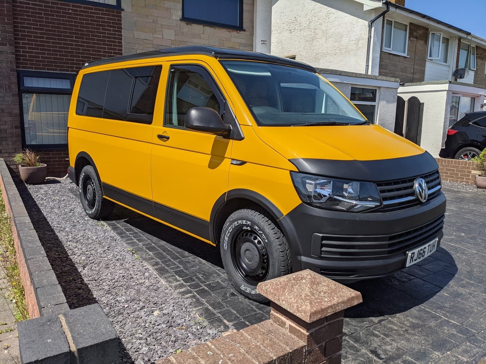 Definitely not yellow to match the van because that always looks a bit shit. Not sure what else to try, though. Maybe a really dark grey or something?