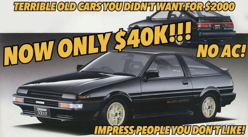 Isn’t the black limited the rarest 86? Super into AE86s having following juiceboxforyou