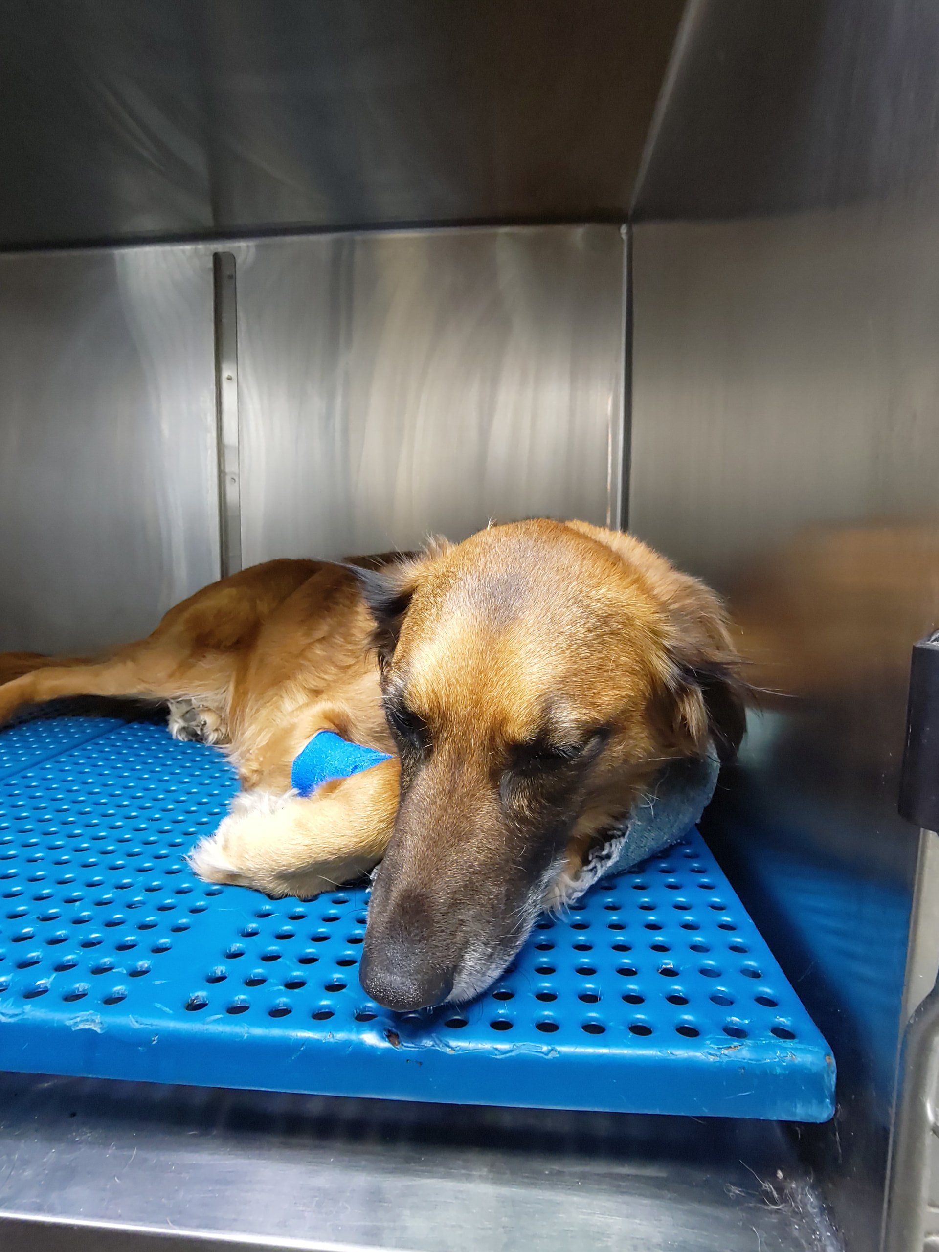 Been going over to visit her a couple of times a day and she was able to go for a little walk around the block this morning and did the worst shit known to man, basically toxic waste smelling and almost all blood but she just needed to get it all out, first shit in days. She’s much better though and apart from just being really tired is alert and started eating again so nobody is worried anymore, should be released tomorrow afternoon assuming blood work tomorrow is all ok.