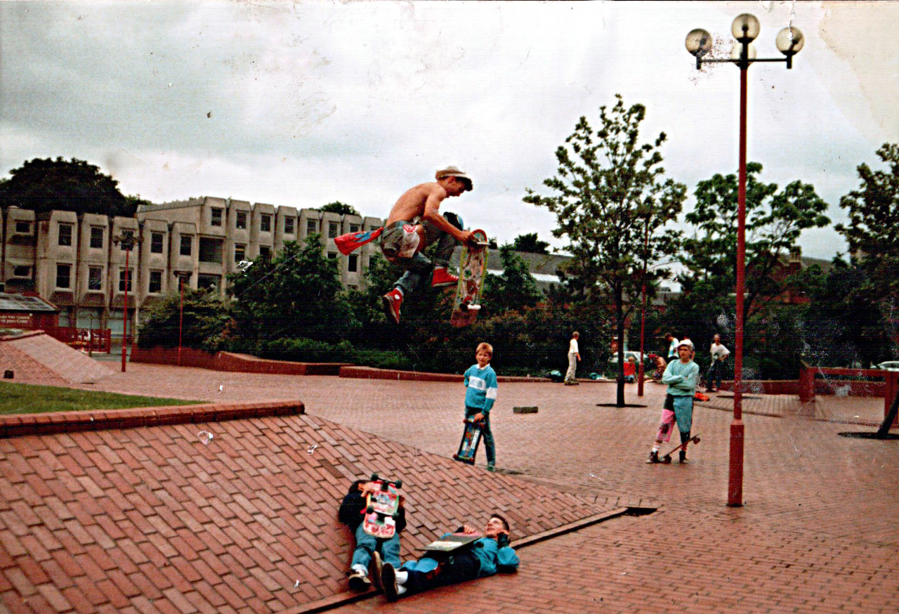 The day that Skateboard! came to Leeds (Chris Gregory bs ollie Uni banks cover) in 1990/91 I went through the window behind where Roz is there doing an early grab.