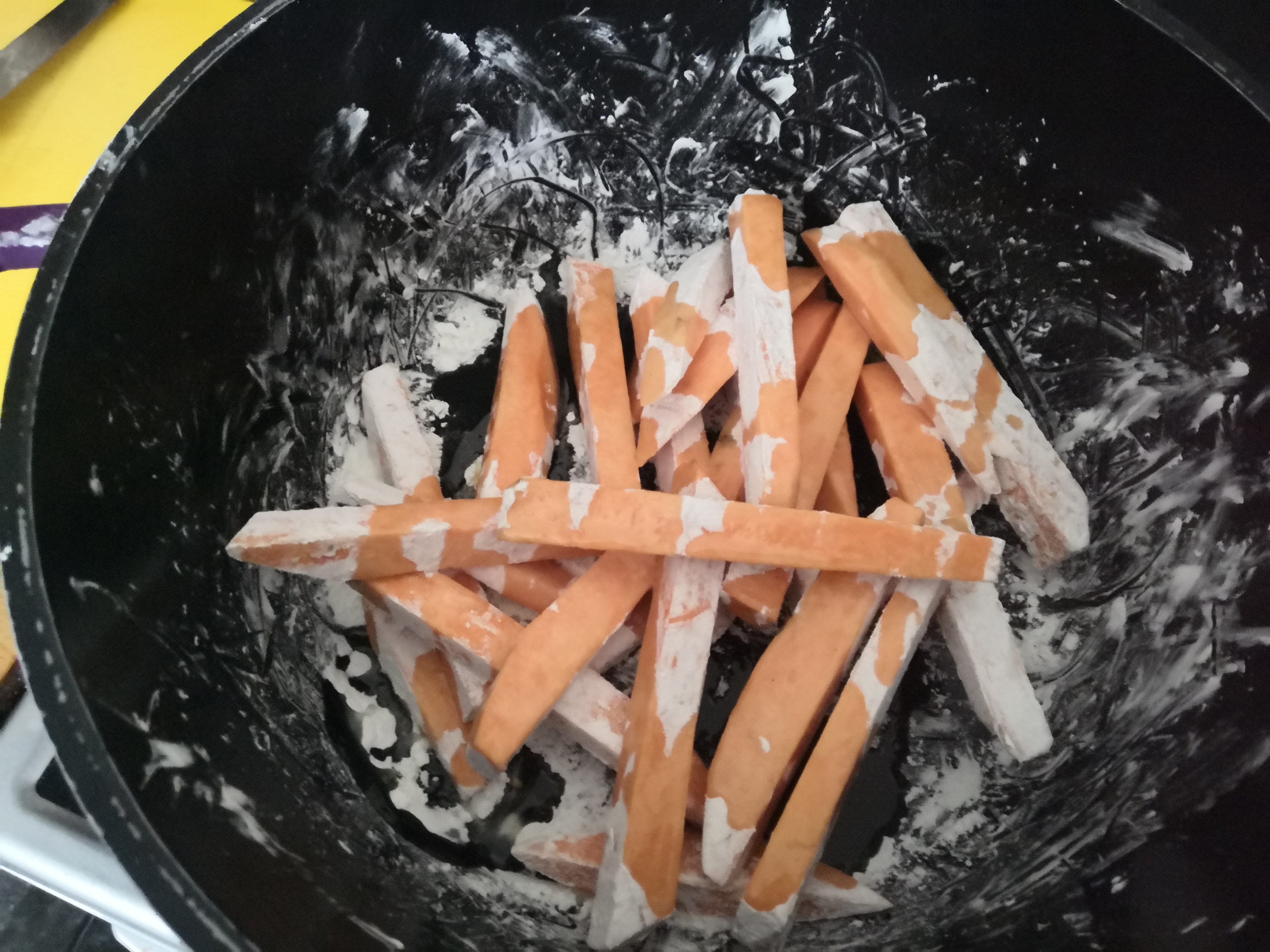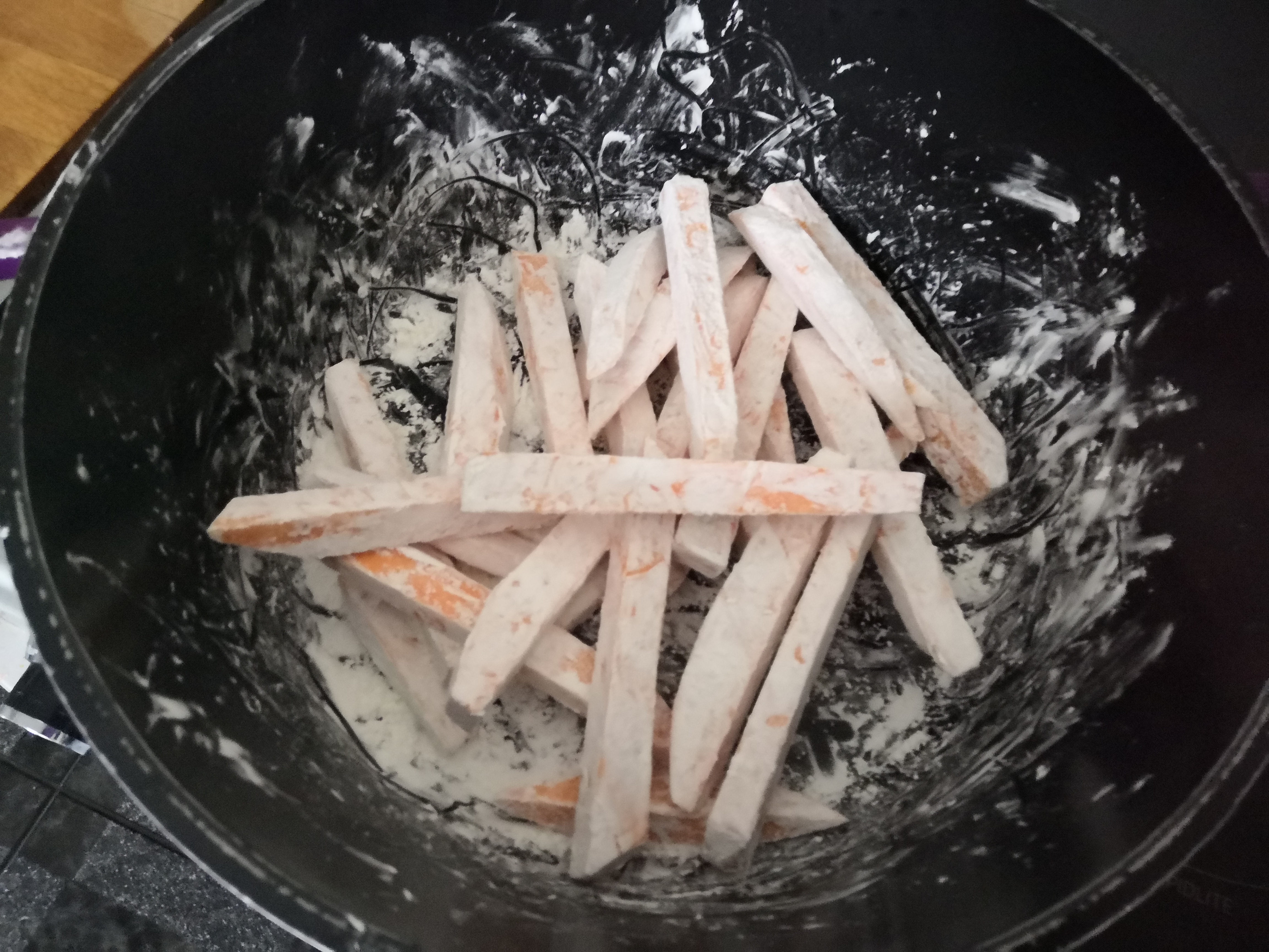 Put them in a big bowl and chuck a fuck load of cornflour all over them. Chuck in a bit of salt as well.