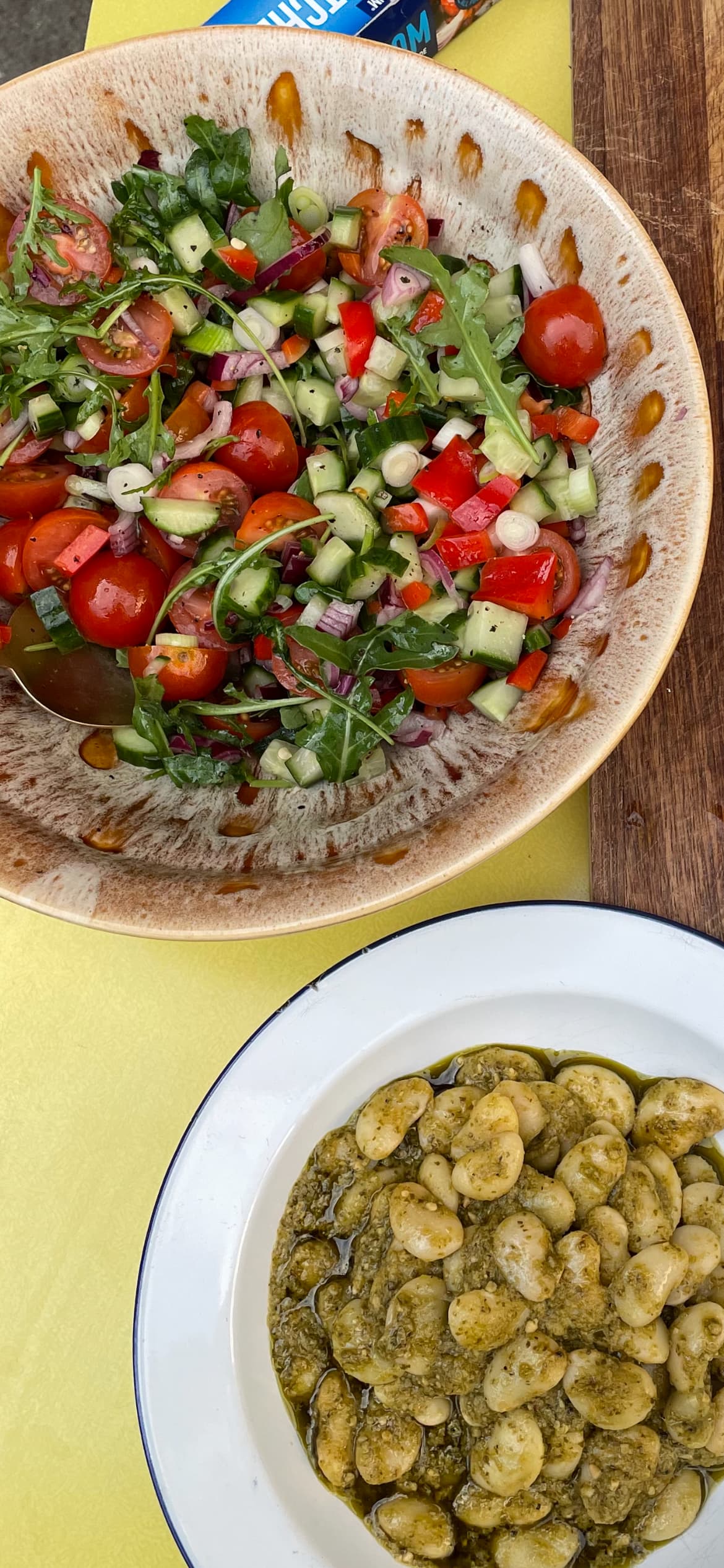 Just made Gnocchi with black pudding, pesto and basil. Sounds rank, tastes amazing