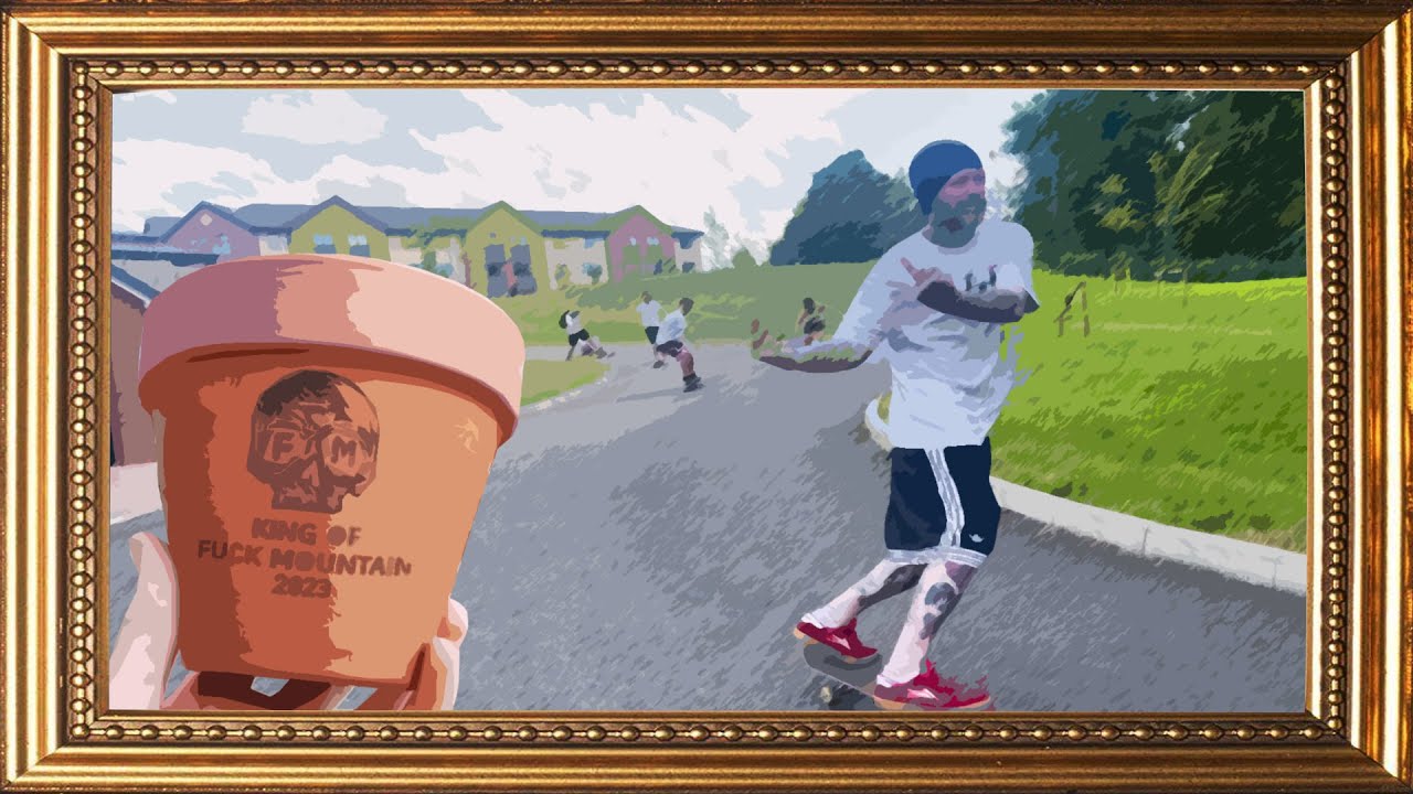 Me and my mates battle it out in increasingly ridiculous skateboard related challenges in order to win a plant pot. (Think crab walk battle royale, musical chairs, hill bomb race etc)