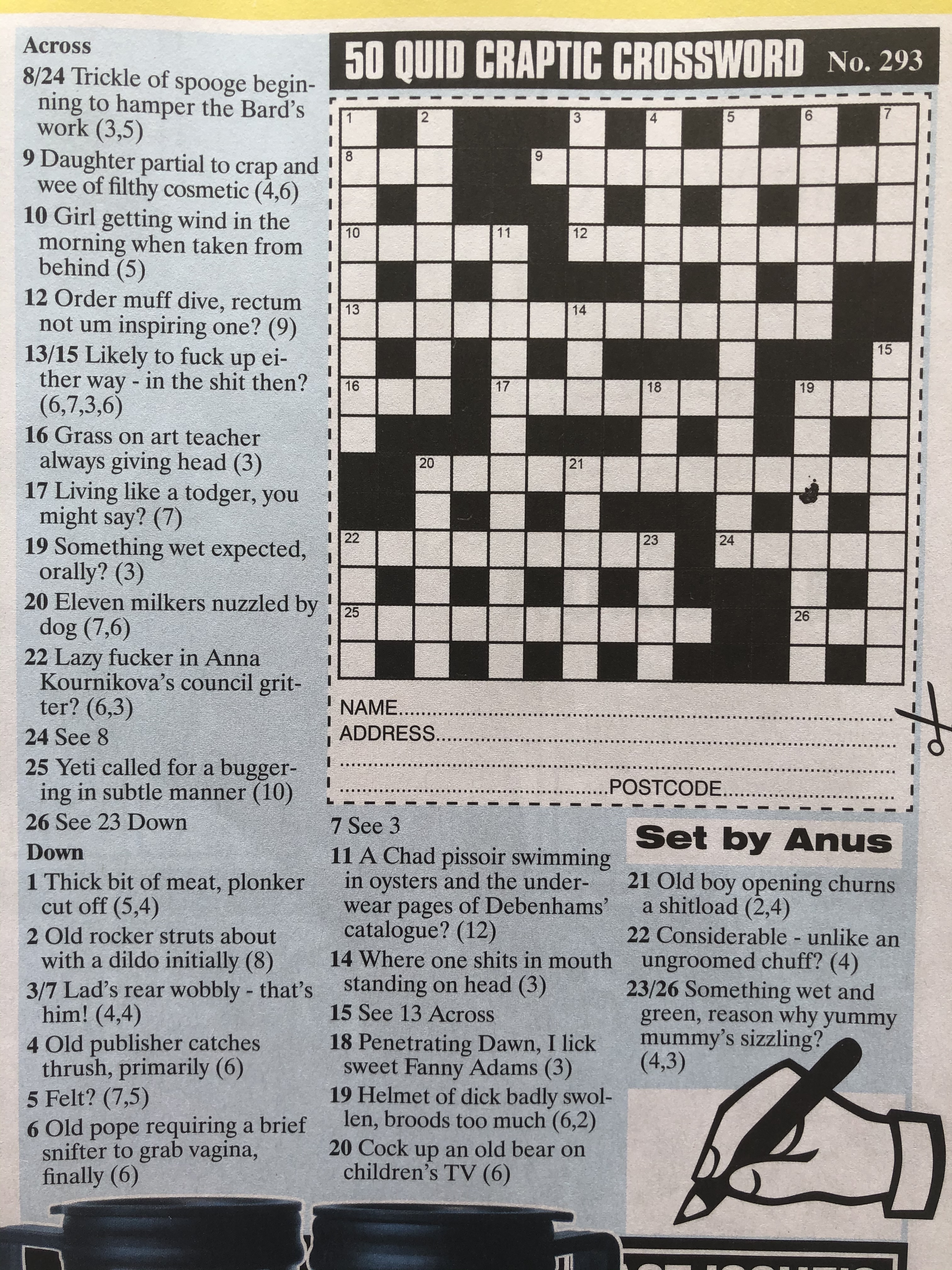 22a TENNIS…something (Net?) fits but I can’t see why apart from Anna Kournikova being in the middle of the clue so I don’t think that’s the right path.