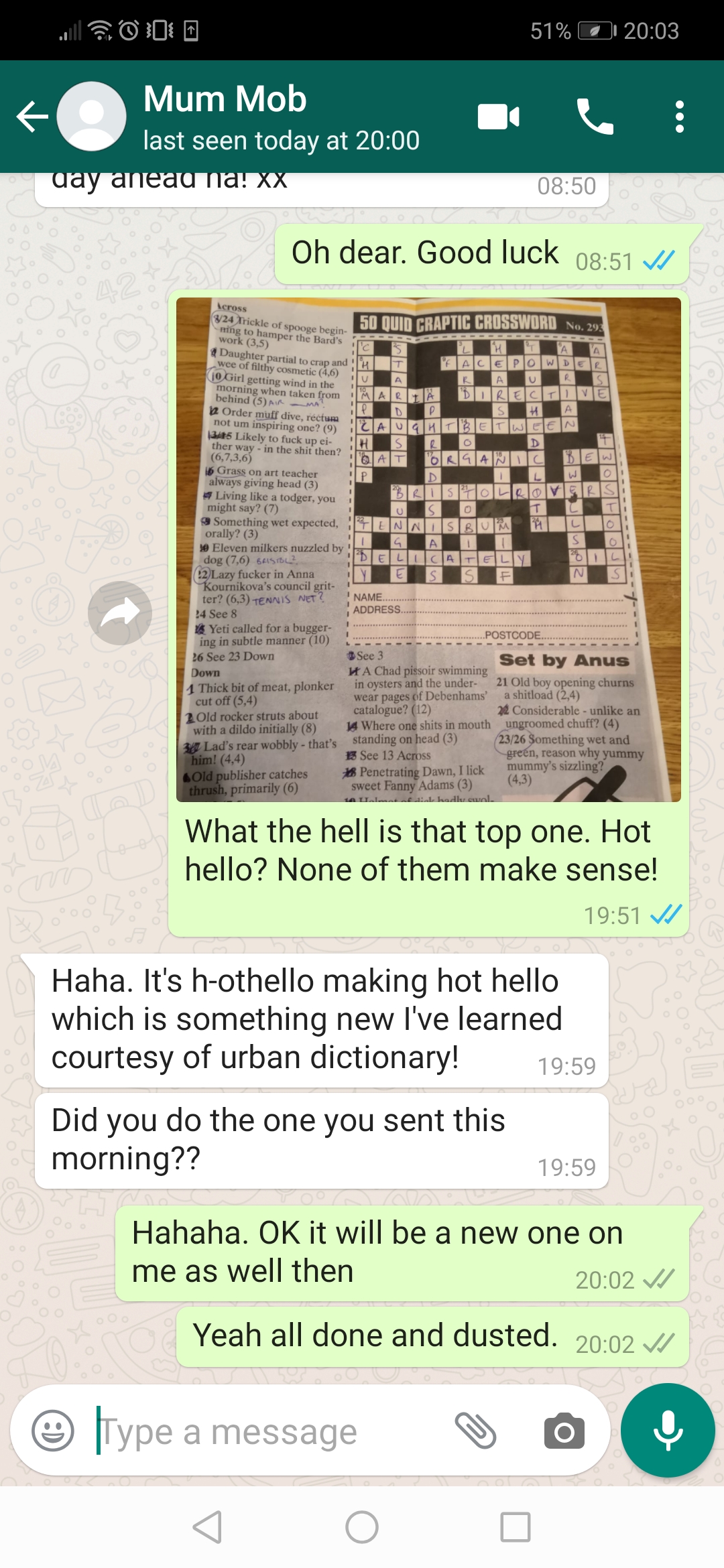 £50/26 is £1.92 you cheeky fuck. A fiver for one anagram.