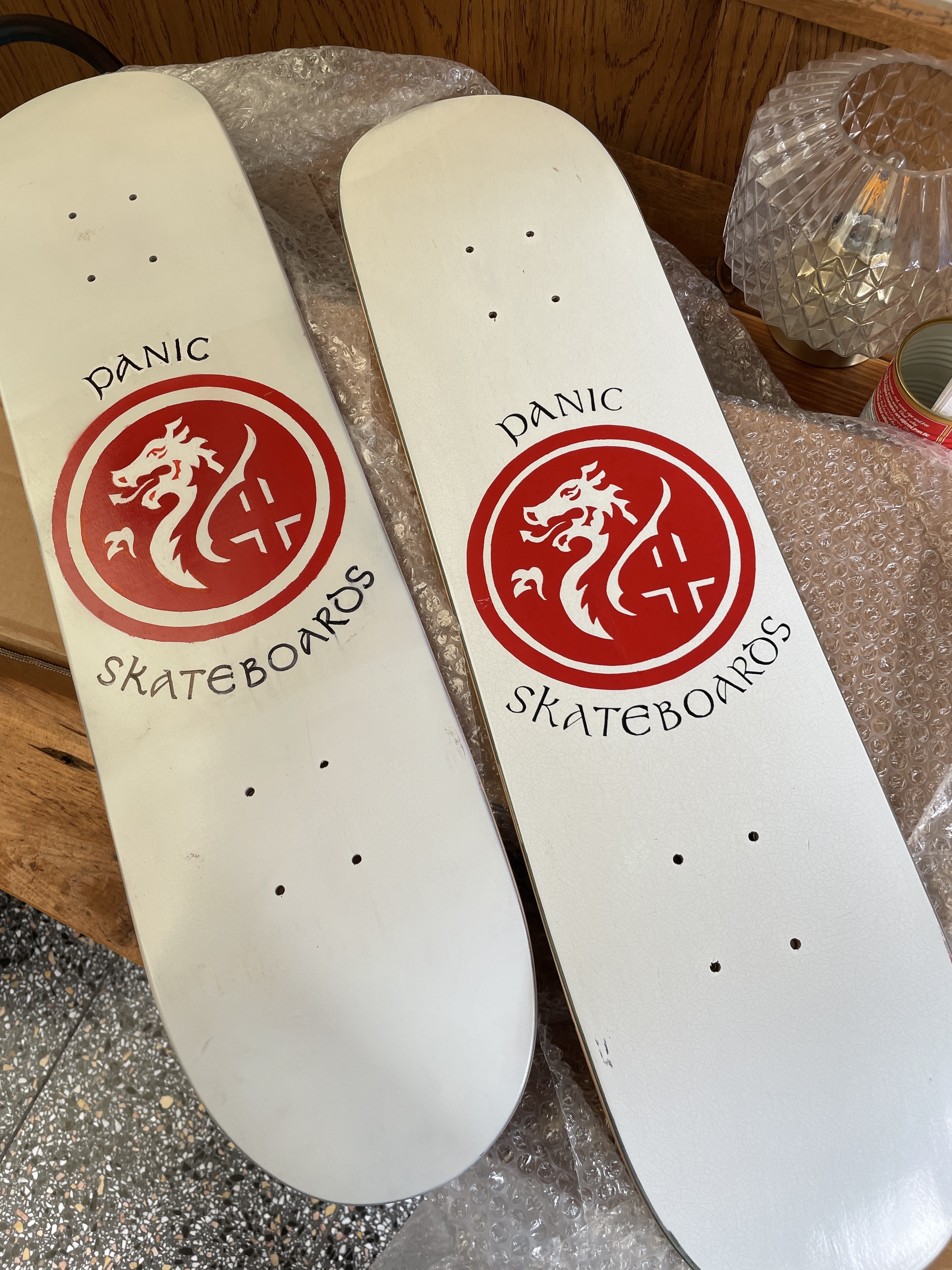 The Panic boards that were ordered, for the announcement that Panic existed at the Radlands comp, were delayed. So those ones there were hand-painted Big Spin blanks that Selley did.