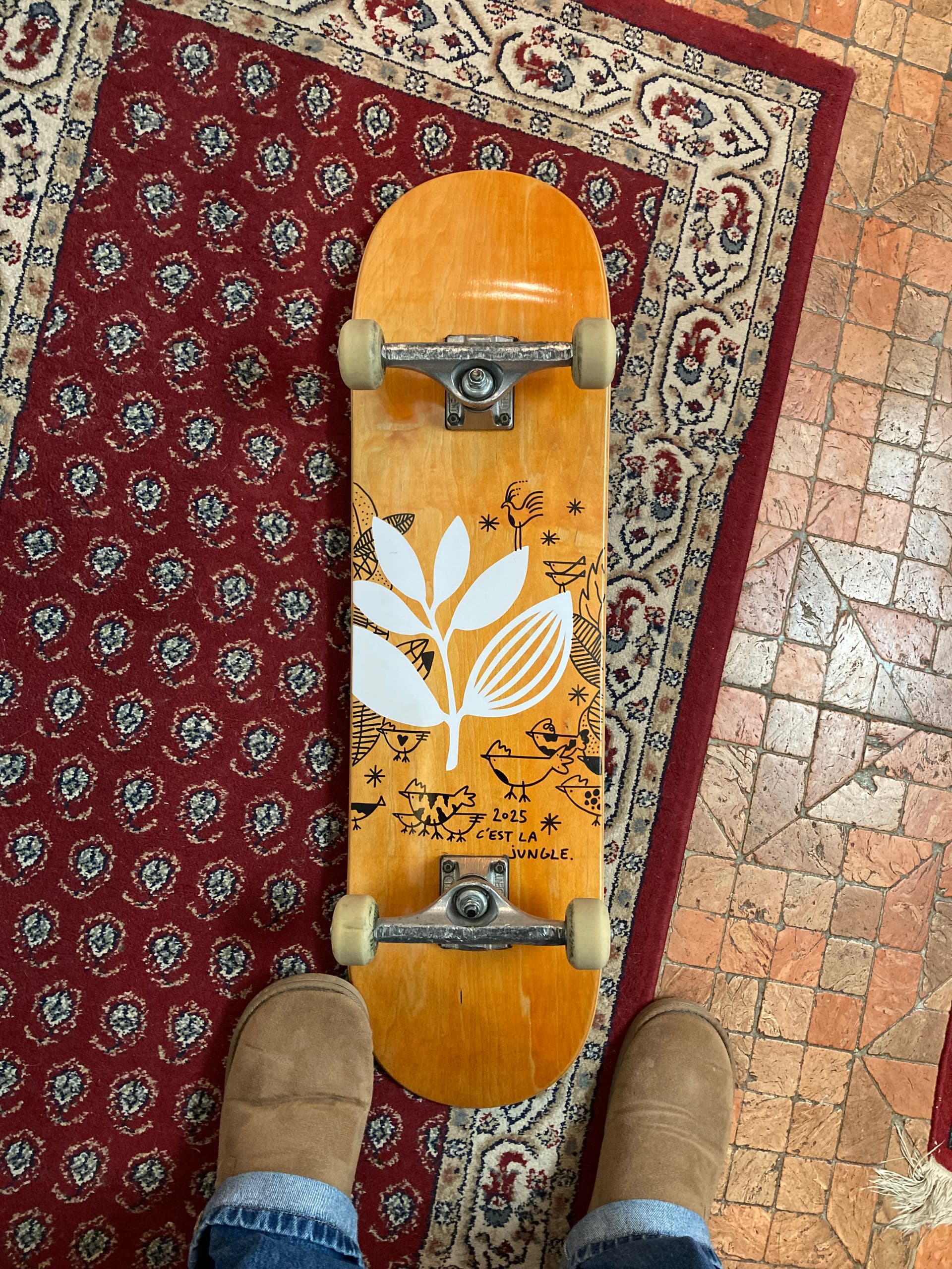 Had a warped Magenta team board lying around, unwarped it with a homemade press, looked pretty straight after 10 days or so, thought I’d tart it up with a sharpie tonight. Kinda stoked on it now. It’s gonna be a good board for outdoor skates in harsh winter conditions.