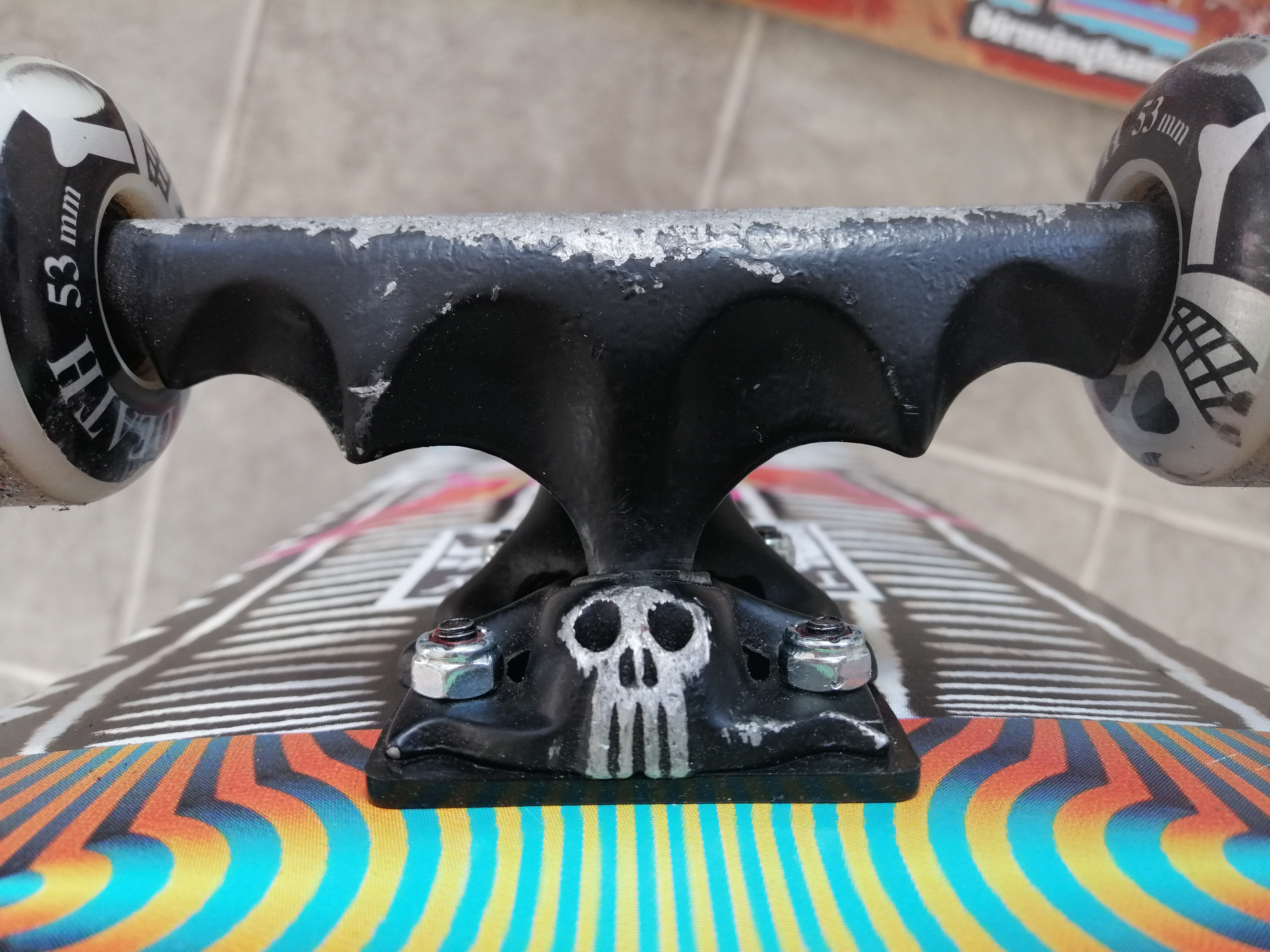 Bottom is my current setup. Palace 7.75, Kre-Per trucks (also from around 2002ish), and Death 53mm wheels. I’ve included a close up of the trucks because they seemed to be quite a conversation starter in Ideal. (Again, don’t let the scratches fool you.)