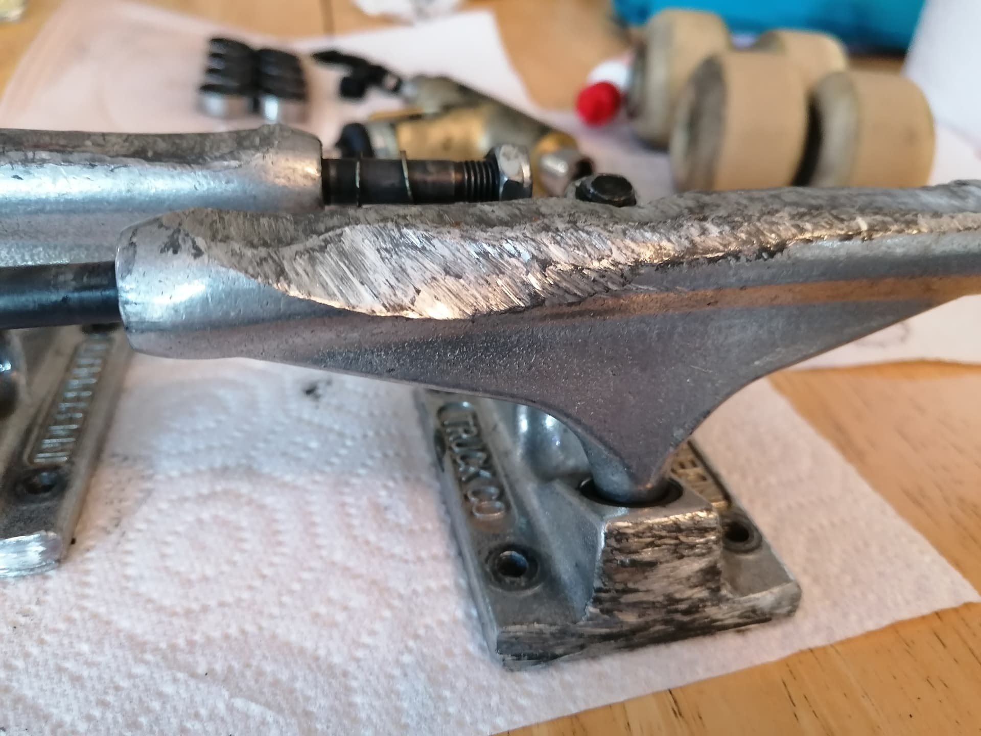 good few months ago before I purchased my own set of Ace’s, there’s a kid who sometimes skates with us and I spotted he was running Ace’s so I asked for a go. Given everything I’d known/heard about Ace’s prior to this I expected to be hitting very deep carves etc, instead I got pitched to the floor as they were unfathomably the tightest set of trucks I’ve ever had the misfortune of touching. Bumped into him again and had to grab a picture of this:
