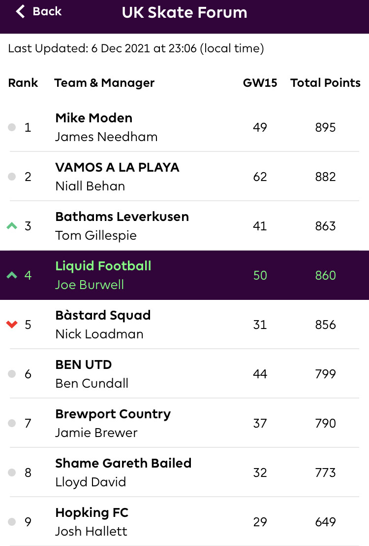 If anyone wants to join the UKSkateForum FPL here’s the code: Fantasy Premier League, Official Fantasy Football Game of the Premier League