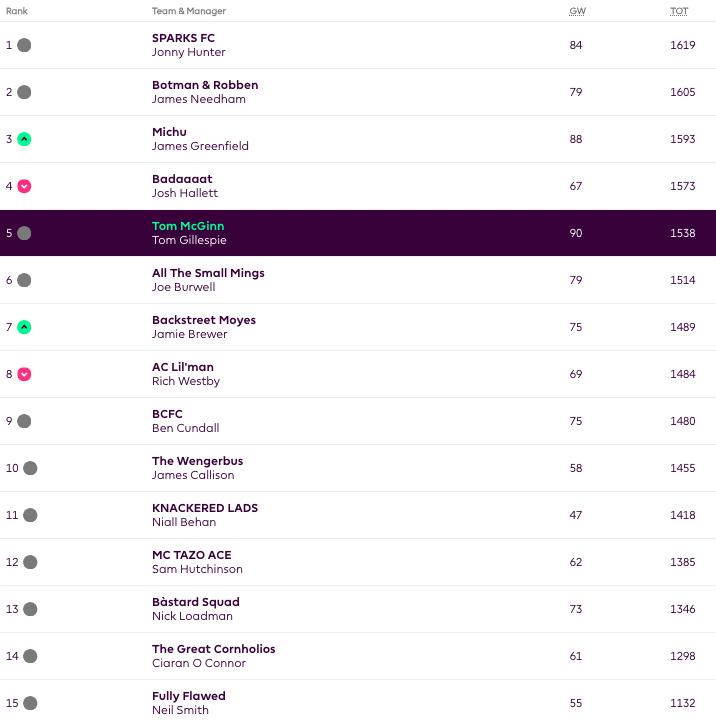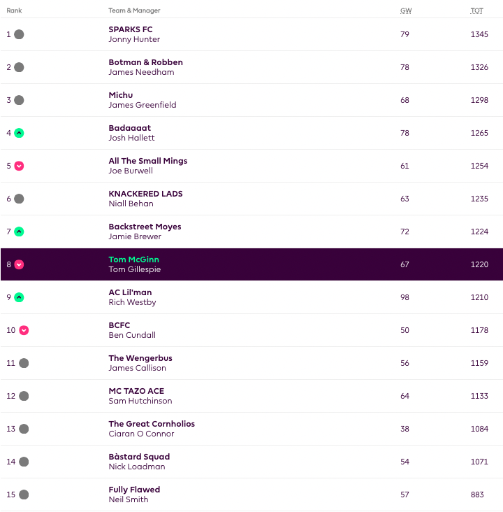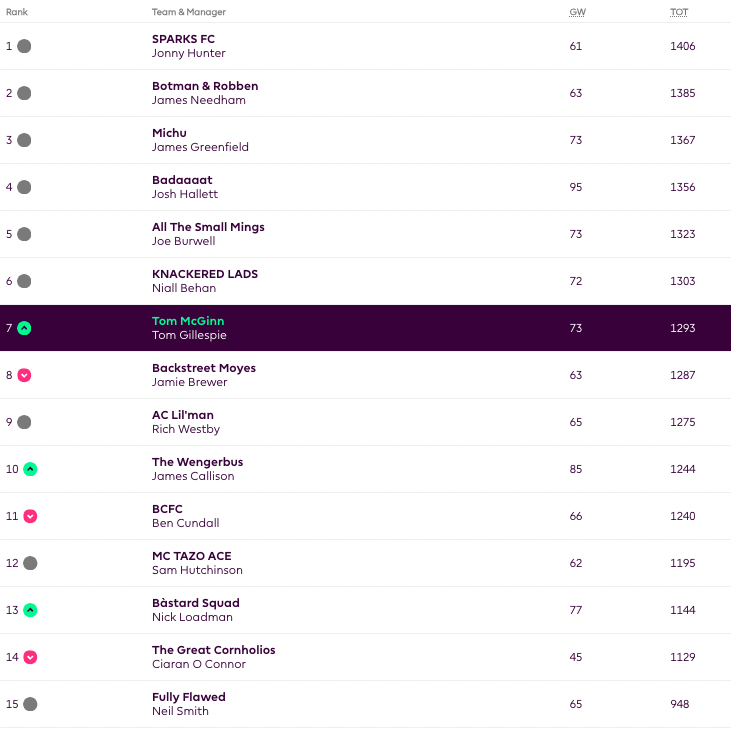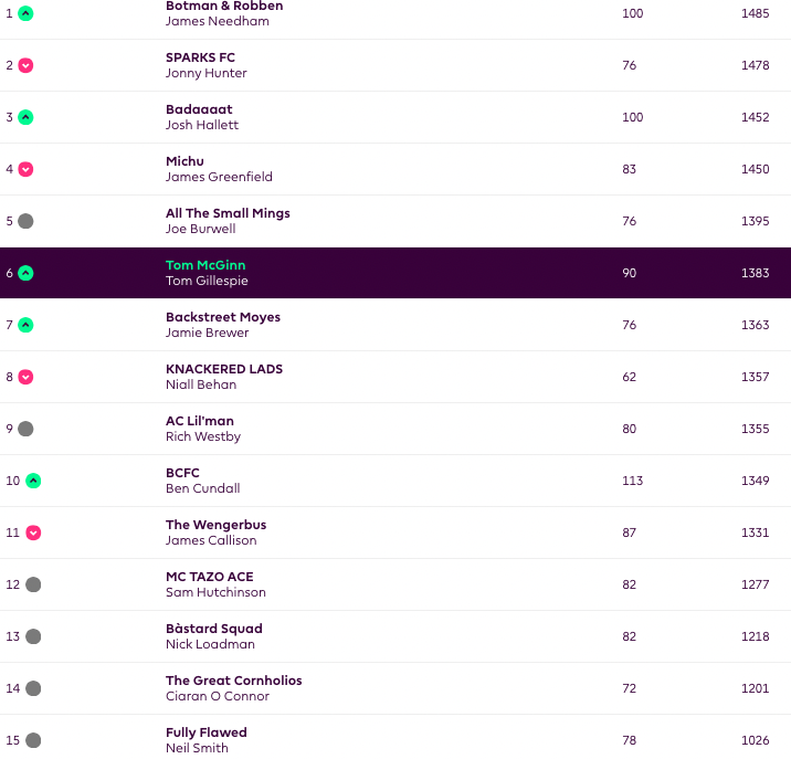 Manager of the Week: Some prick called Tom with 69 points (good to make up toe the Haaland triple captain flop last GW)