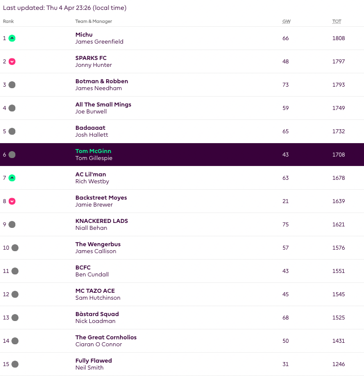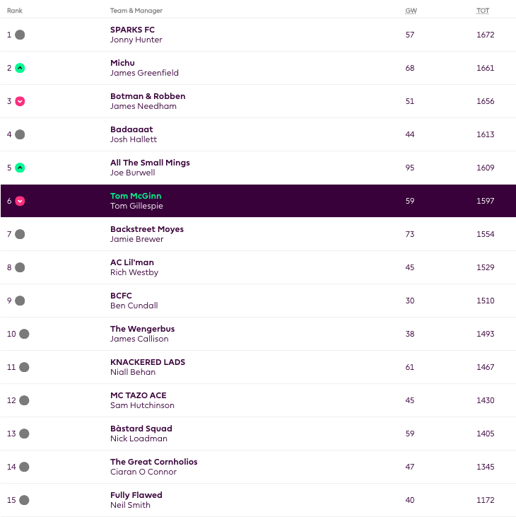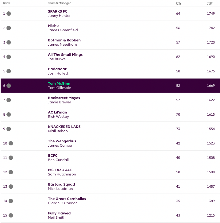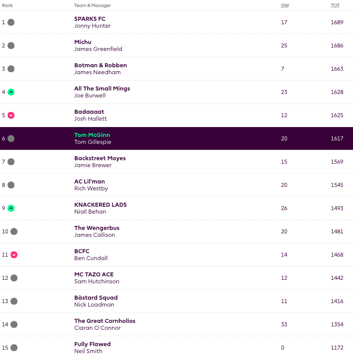 Manager of the Week: Niall with 75 points