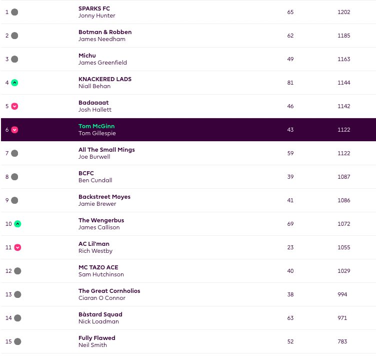 Manager of the Week: Niall Behan’s KNACKERED LADS with 81.