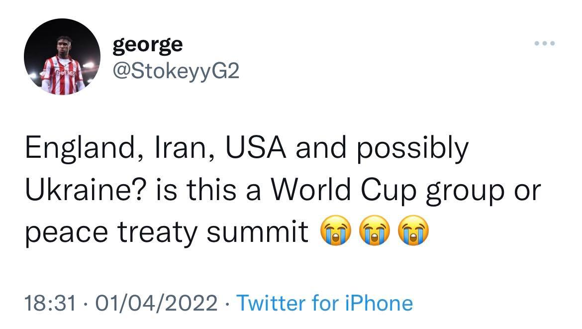 So, England, Iran, USA and Scotland/Wales/Ukraine at the World Cup, should be favourites to get out of the group surely?