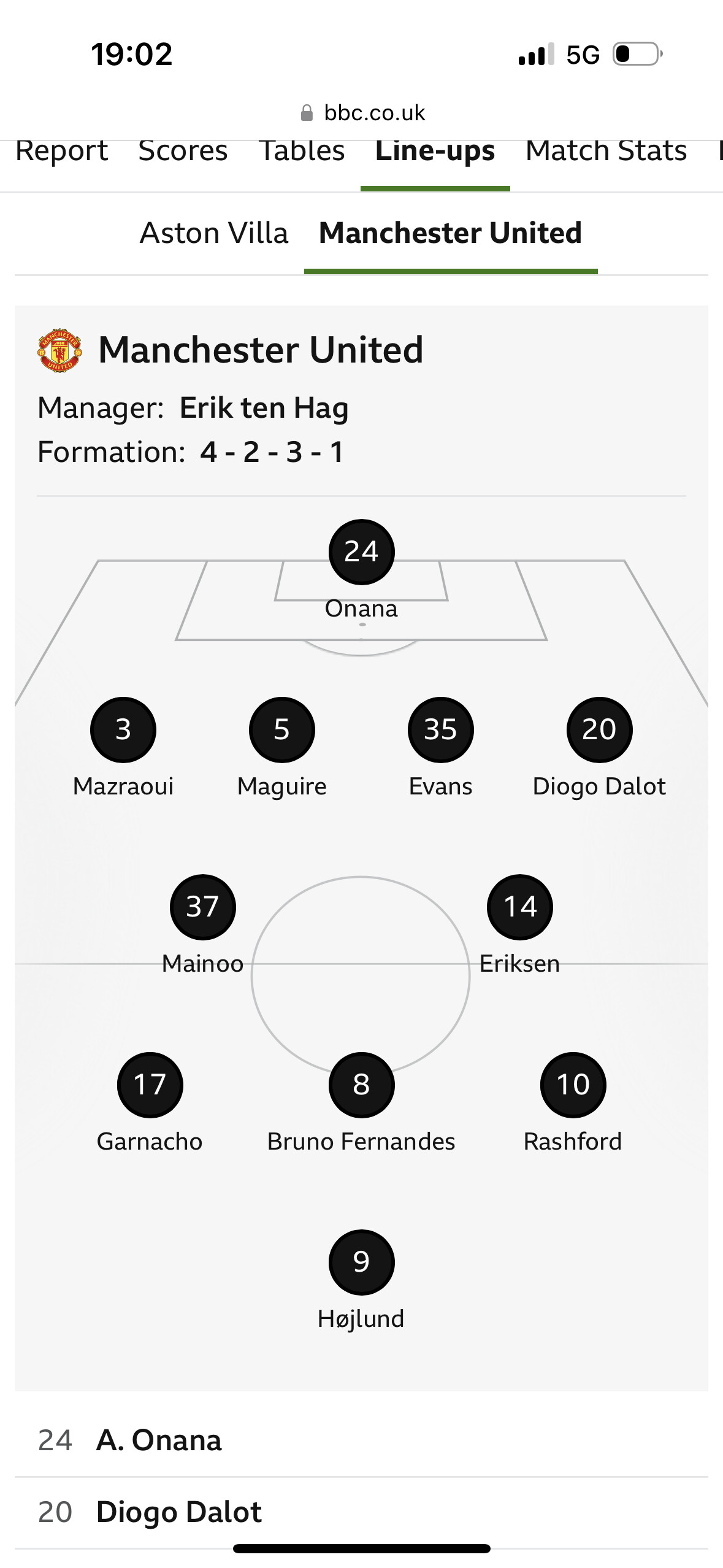 Think it says a lot with Jonny Evans and Maguire at the back, I donât know your injuries but this is a weird fucking team. (For United standards) is Dalot a LB? Asking a lot of Mainoo in this position as well. (Same with us and Miley last season)
