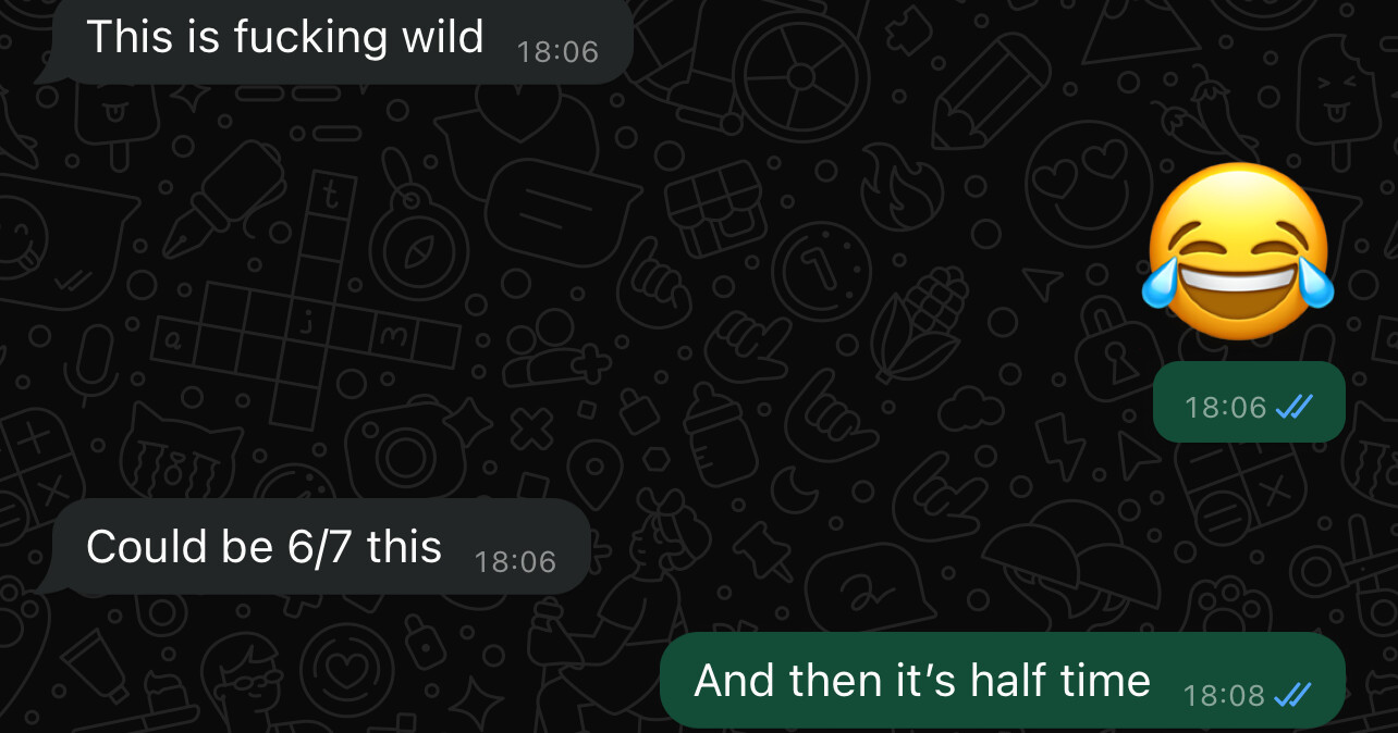 Need this win like a whole in the head after Monday. 1 up at Palace but not looking overly amazing m.