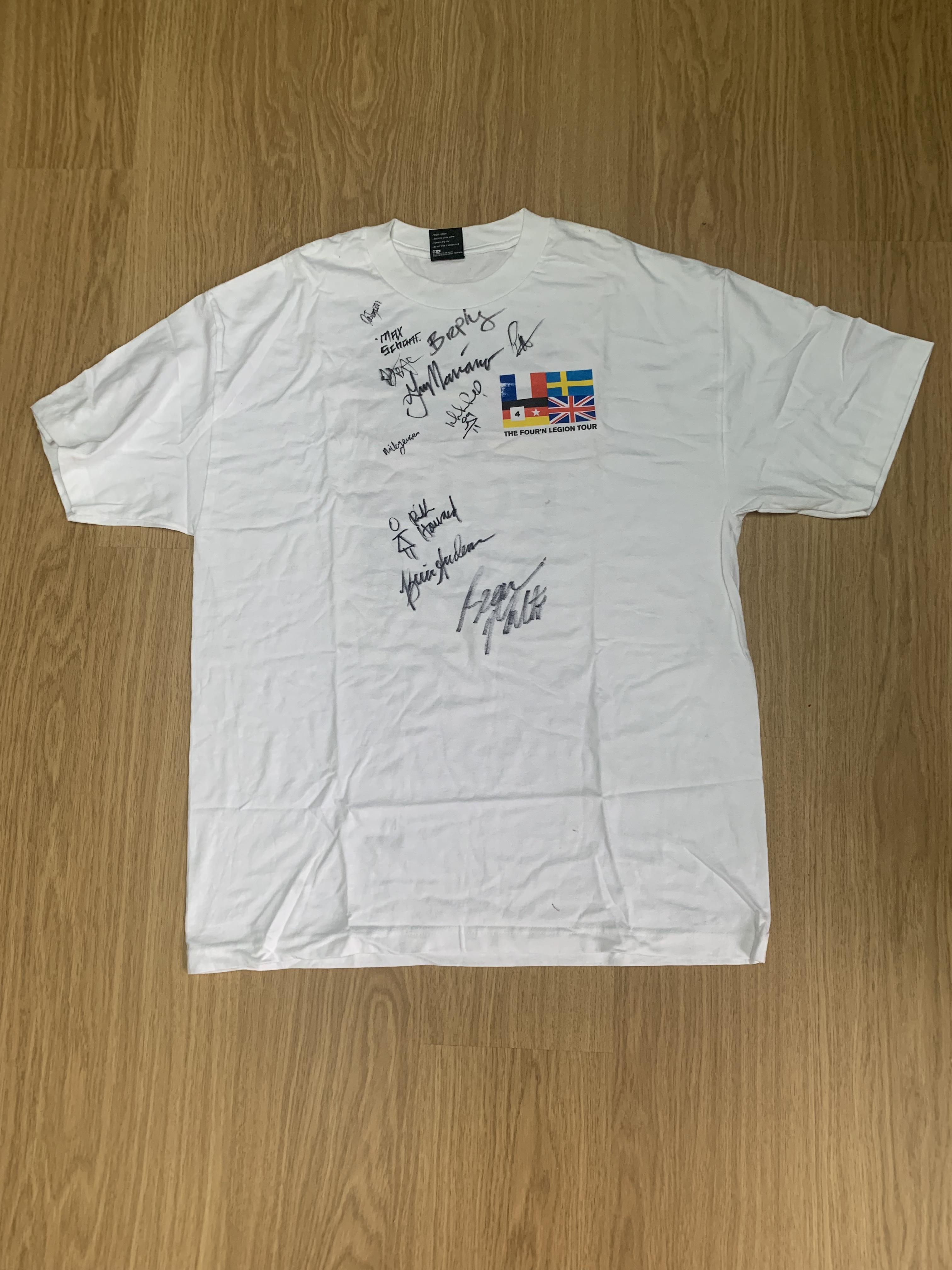 Found this whilst having a big sort out. Must have moved over 6 times with this in a bag of old skate tees that I haven’t look at in over 15 years. I Anon’s feelings about selling signed tees, but this isn’t in my size and the other half won’t have it up on the wall, so time for it to go. Edit. Found this 4 Star tour tee as well. Signed by pretty much the whole team.
