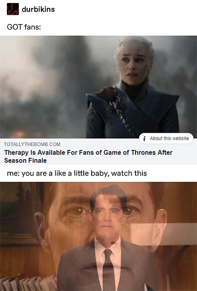 What is the actual thing you take away from GoT. Shit happens? That’s all I’ve got.