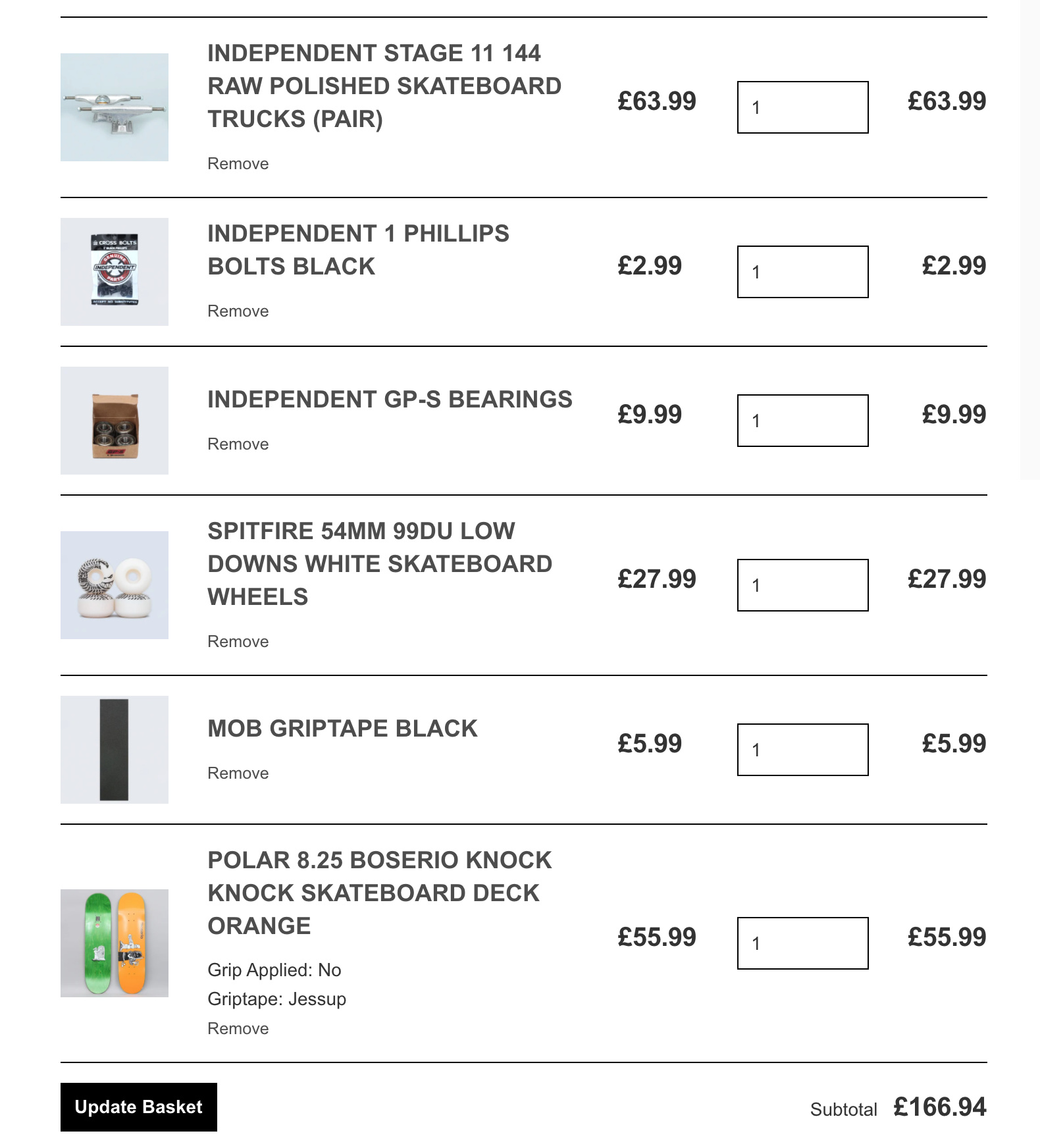 £166 total, including a board. So, basically £100.