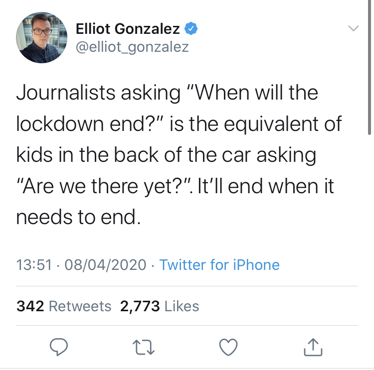 the express had an article recently about how weâve had our peak, the numbers are dropping and thus we could be out of lockdown by mid-May. some people reposted it on my FB feed so I had to show them how in fact, the numbers are still rising and it was complete and utter bullshit