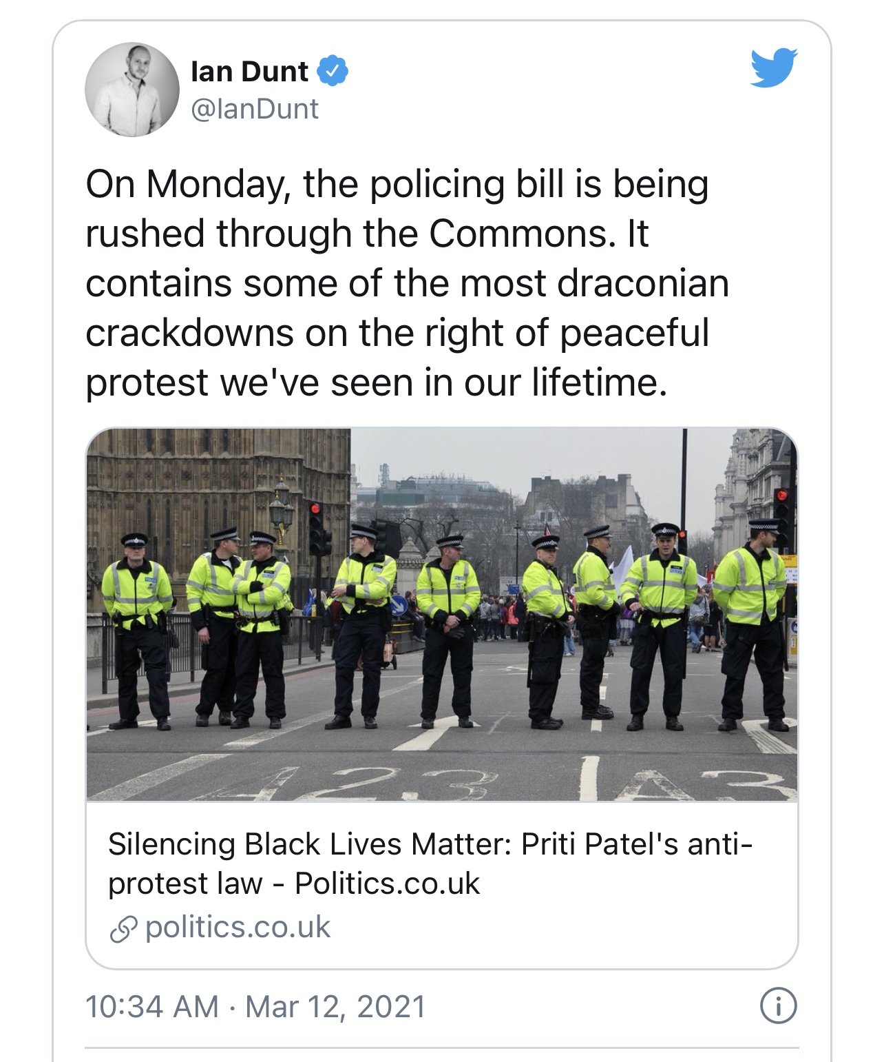 Any chance the heavy handed behaviour from the Police will mean there is a lot more public scrutiny on this bill now?