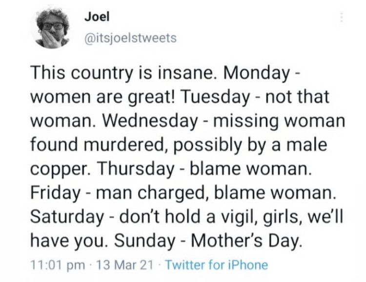 True. It’s just interesting that lots of other people at the vigil were wearing masks, yet the police were still heavy handed with them because of not following social distancing etc.
