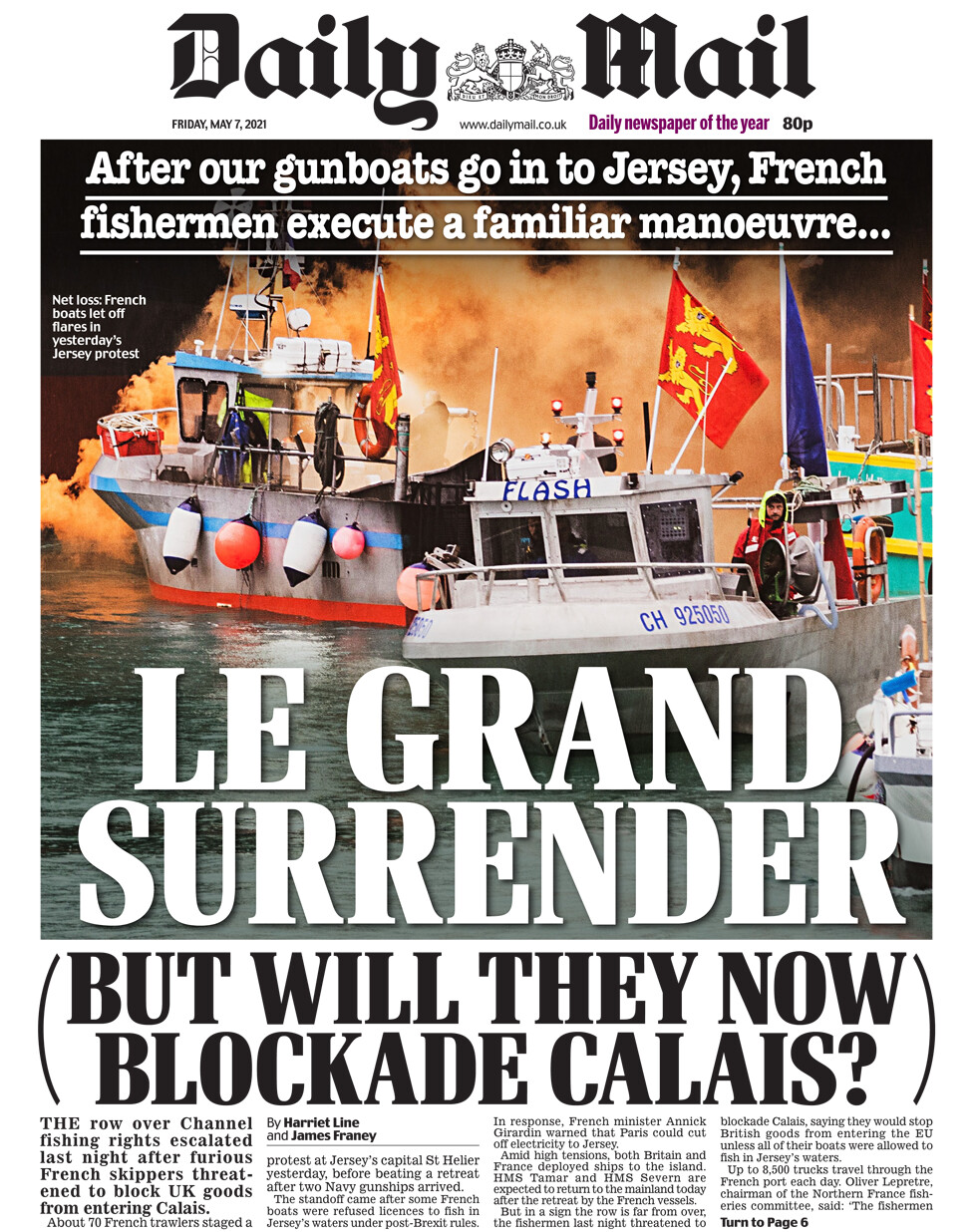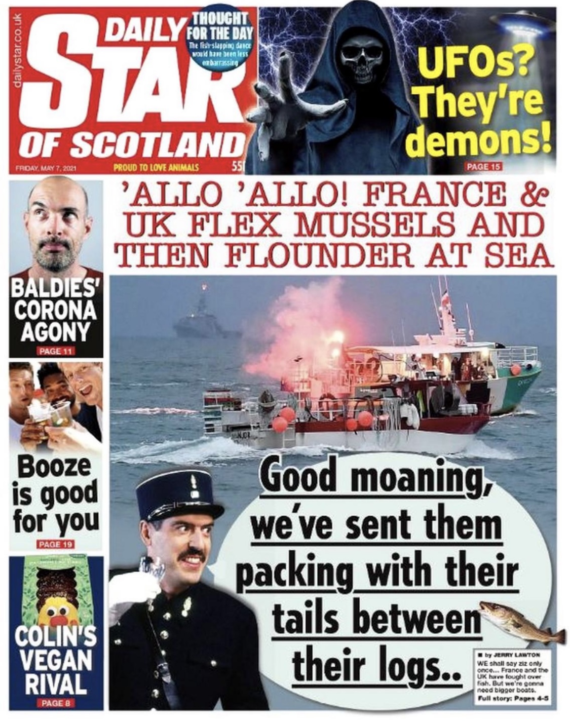 Was just down M&S and 3 doddery old Gammons in a row picked up The Sun. Headline on the front was ‘Take Sprat’ about how our jolly old navy fought off the yellow belly Frenchies single handed.
