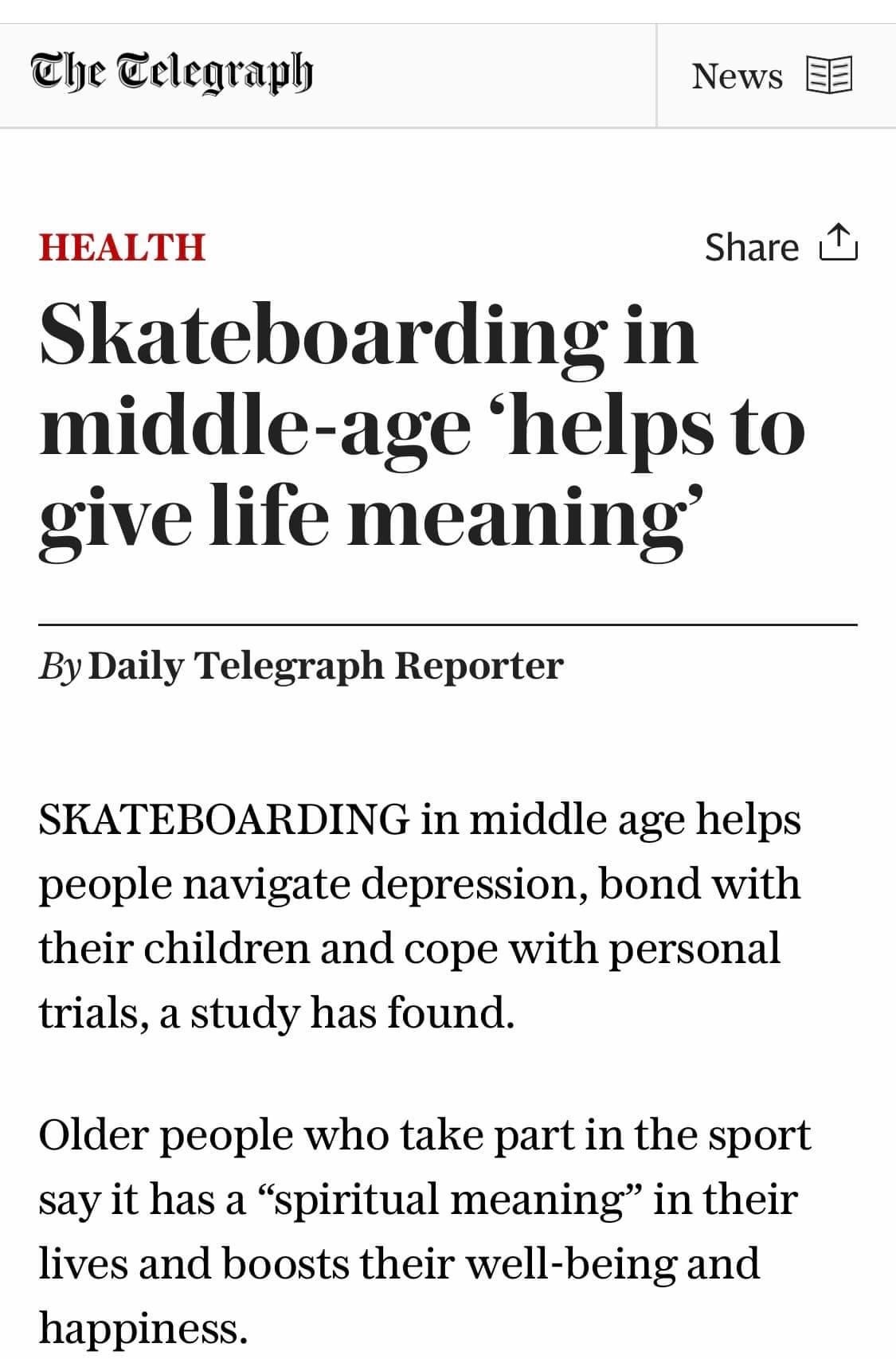 the âexercise as a by-product of having funâ line is something Iâve used for over 20 years. The validation is nice, I guess. I saw something on the Guardian earlier asking for old man skate photos and experiences so theyâre obv getting an article together about this too.