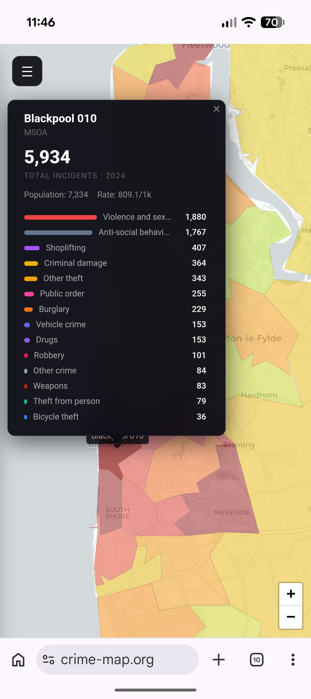 Just checked my old Manchester address, it’s a big number but per capita Preston is 3x more dangerous .