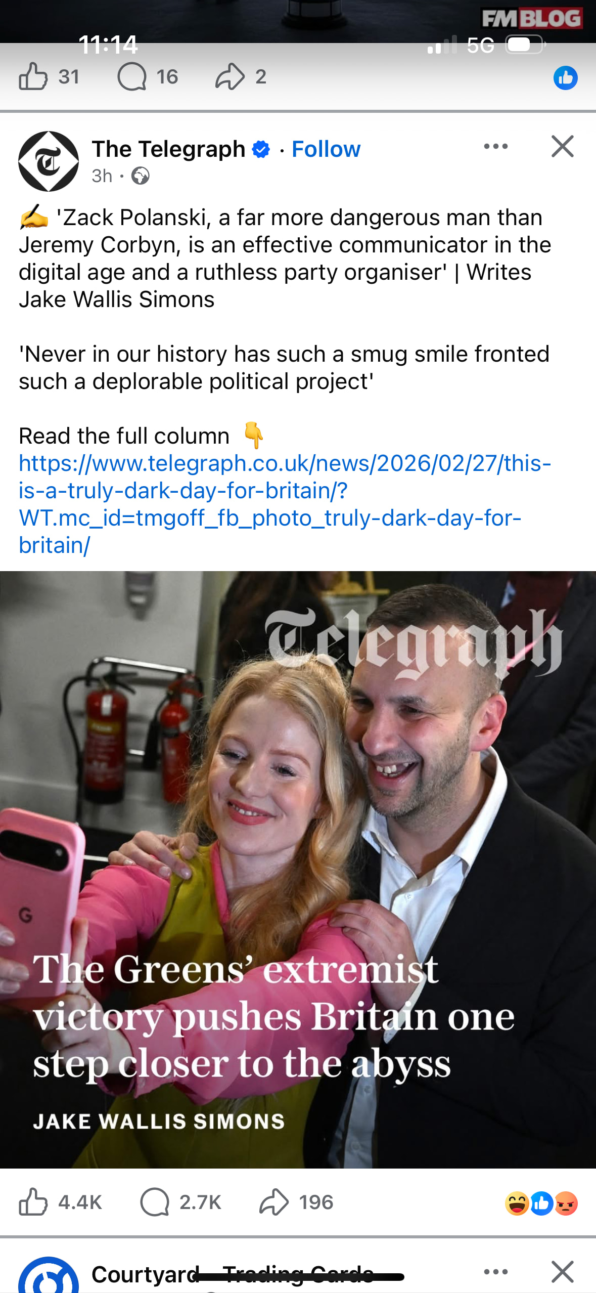 I’m seeing a polarisation of politics towards harder versions of left and right, at least in some areas - both mainstream parties coming behind the Greens and Reform.