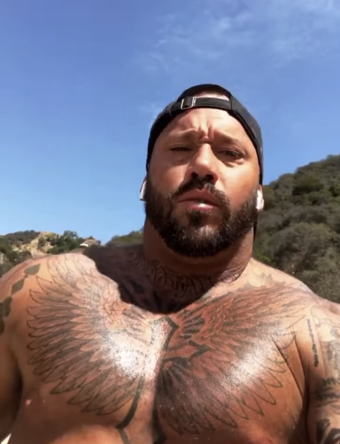 Yeah he’s definitely flexing and hunching his shoulders and shrugging up his traps to make himself look bigger.