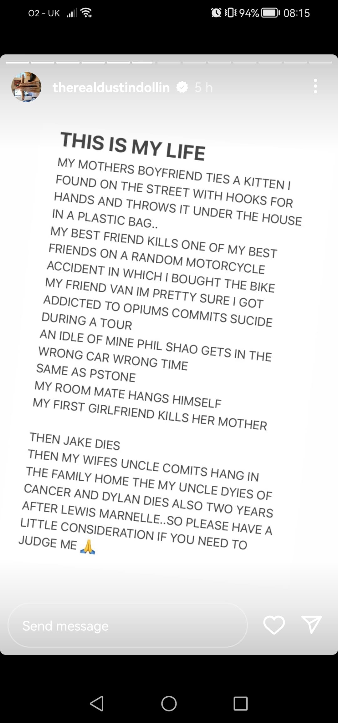 Was genuinely quite sad reading it. Hope he gets his dog back and hope he gets some help too. It read like he seems to feel cursed in some way and was a lot of darkness coming out in his words.
