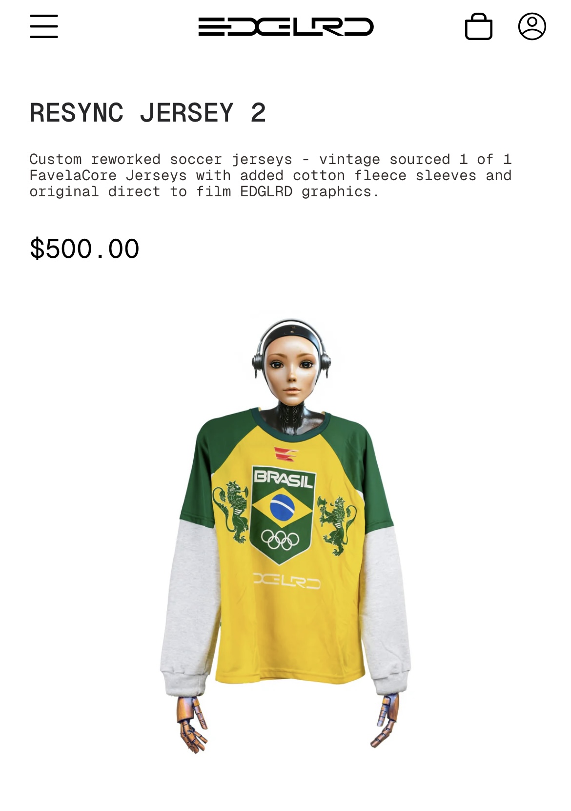 Only know about this because of Gifted Hater, but charity shop football tops with sleeves sewn in an EDGLRD printed on them. 500 bucks.