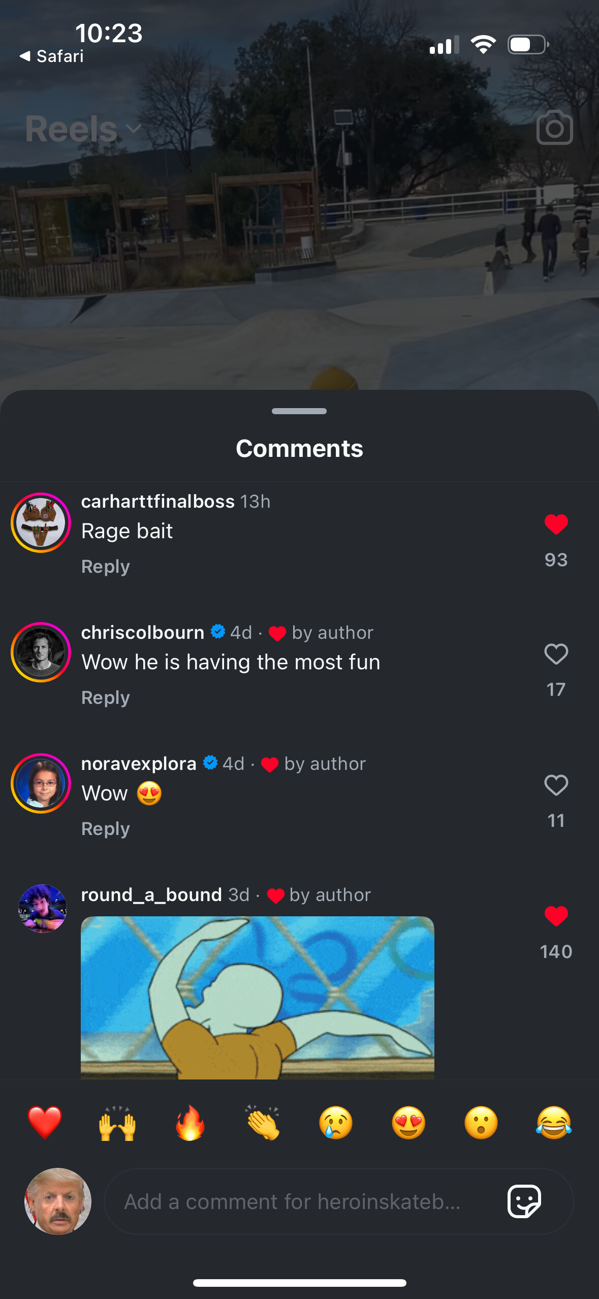 Starting a line with a wallie 180 up a wall, that wheel screech and the mid 90s East Coast style points for trick selection, dope. Switch tre in a line in your late 40s, fabulous. Fakie hurricane, classic BA move, makes it look doper than anyone could. Camo cargos! And it’s filmed at Lloyds! The crowd cheering makes it all even more glorious, you can’t really hear it in this Insta clip but it’s so great in the tour vid.