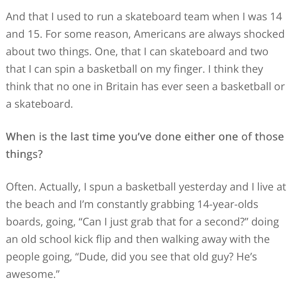 Yep, sounds likely. Quite a bold claim though - ‘professional skateboarder’ - in multiple published interviews. Wonder why he wouldn’t just claim ‘skateboarder’. Must have a great talent for bigging himself up