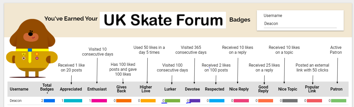I did that to create the badge table though. So if you had multiple badges you can see how many you have of them.