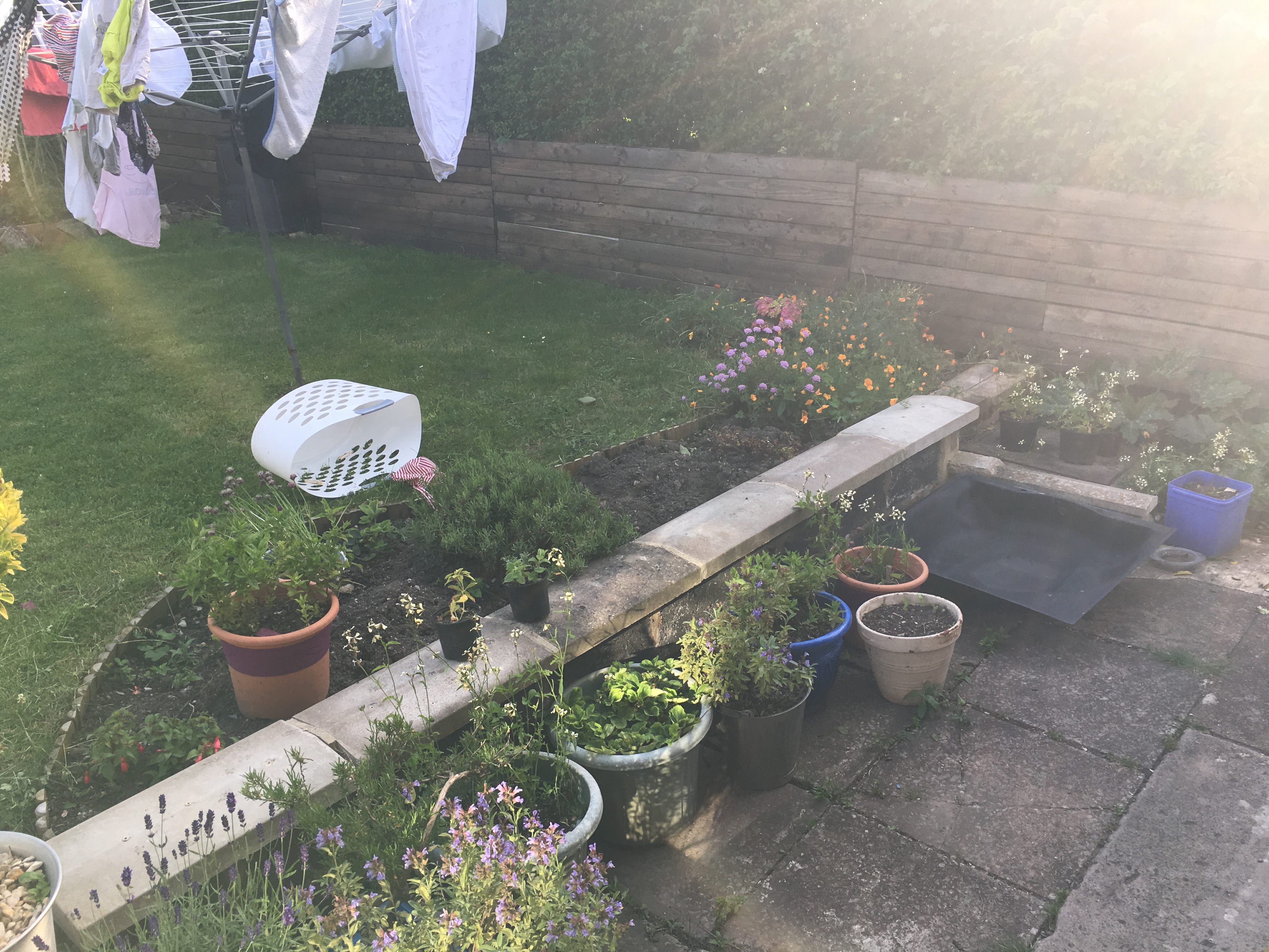 Apologies for the washing in shot! Finally where we want the garden to be after 3ish years work. Stoked on the veg/fruit patch (behind the washing) and the herbs, poppies, etc. Just got the shed all sorted with a proper door, rendered and roof.