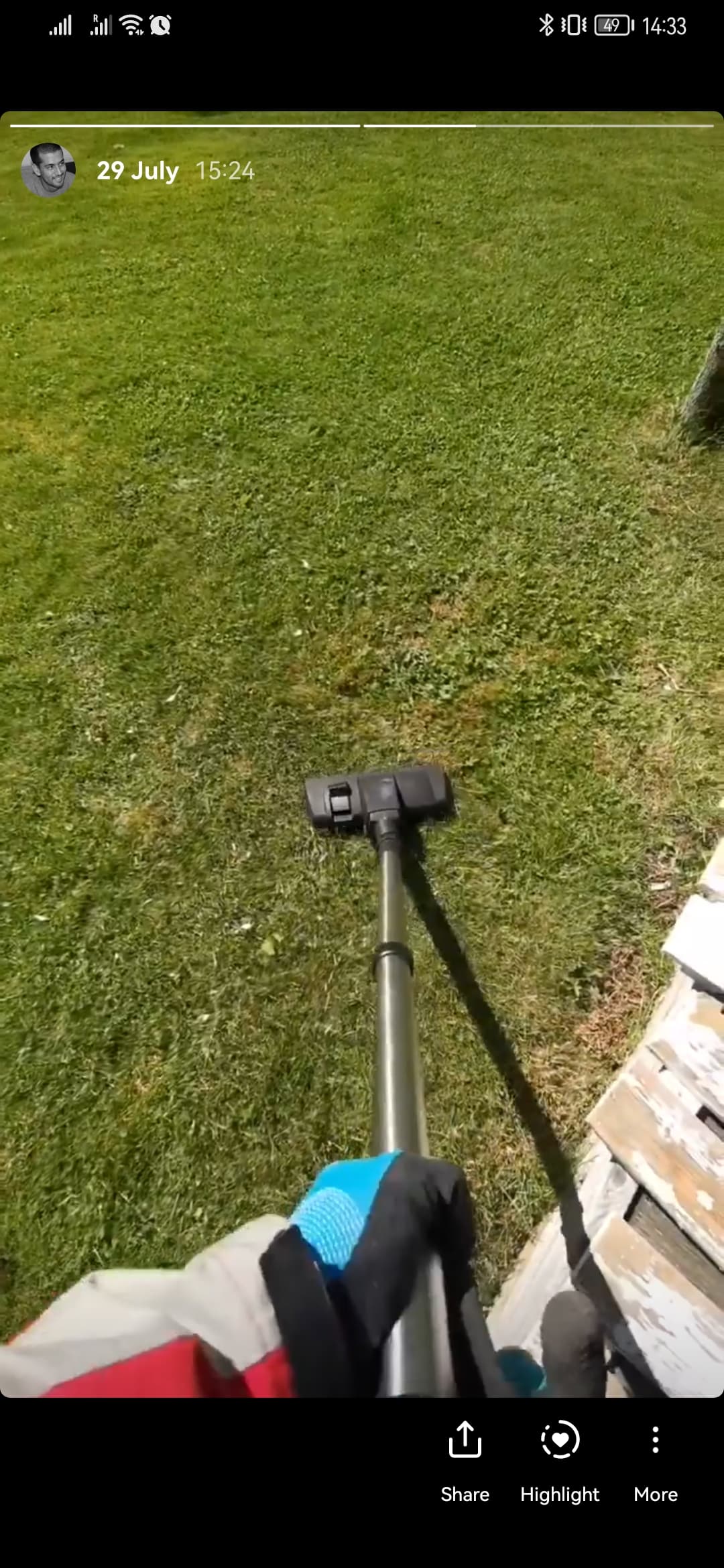 New lawnmower yesterday. Cutting the last bit of grass and caught the patio with the blade… ![]()