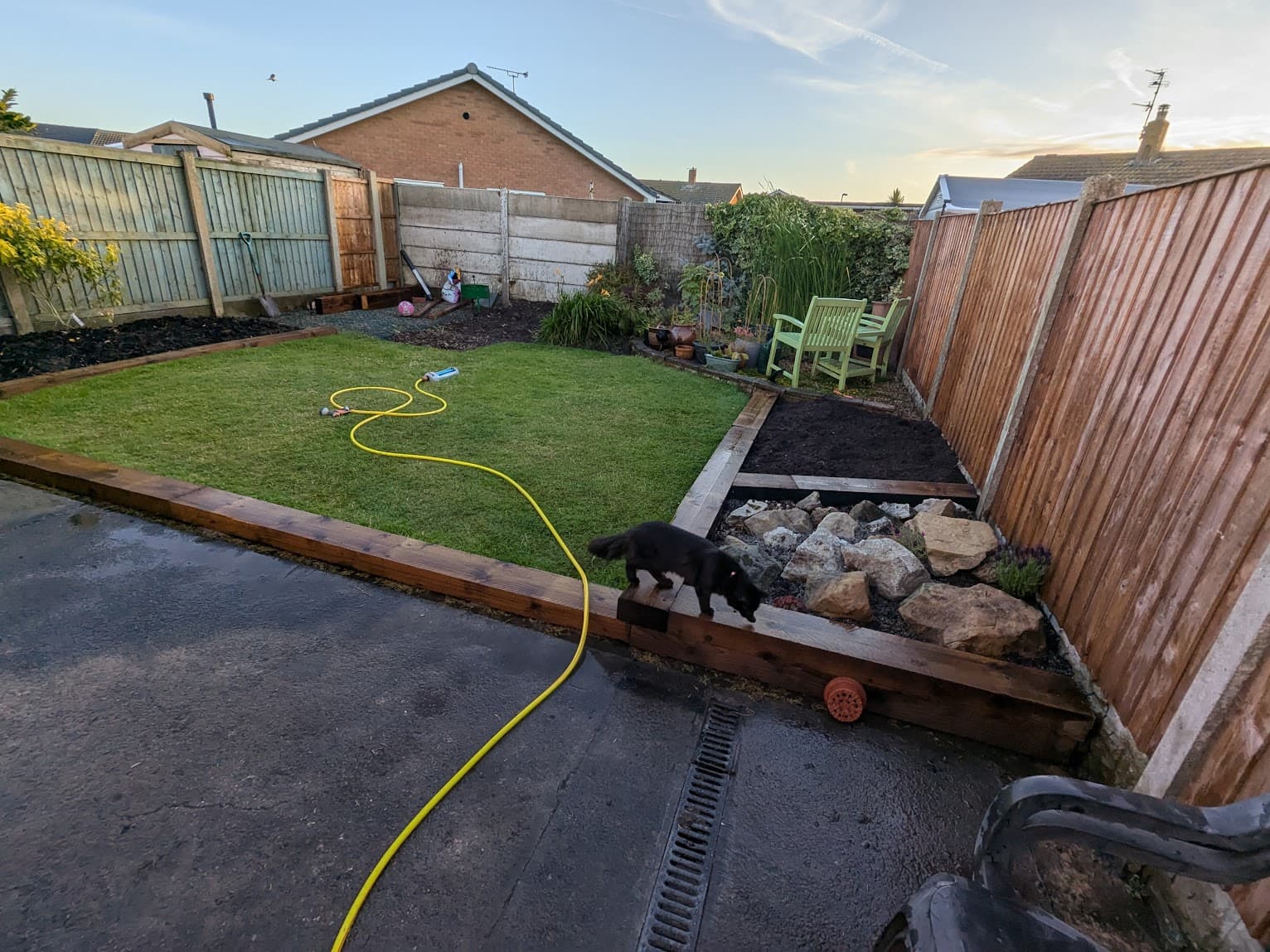 Good work! I’ve moved so much material about the last couple of weeks, dug up all the borders graded the soil put some sleepers down around the edge, taken two trees out and cleared a space for a new shed/summer house type of thing that I’m going to attempt to design and build myself, also got some tiles for the concrete patio.