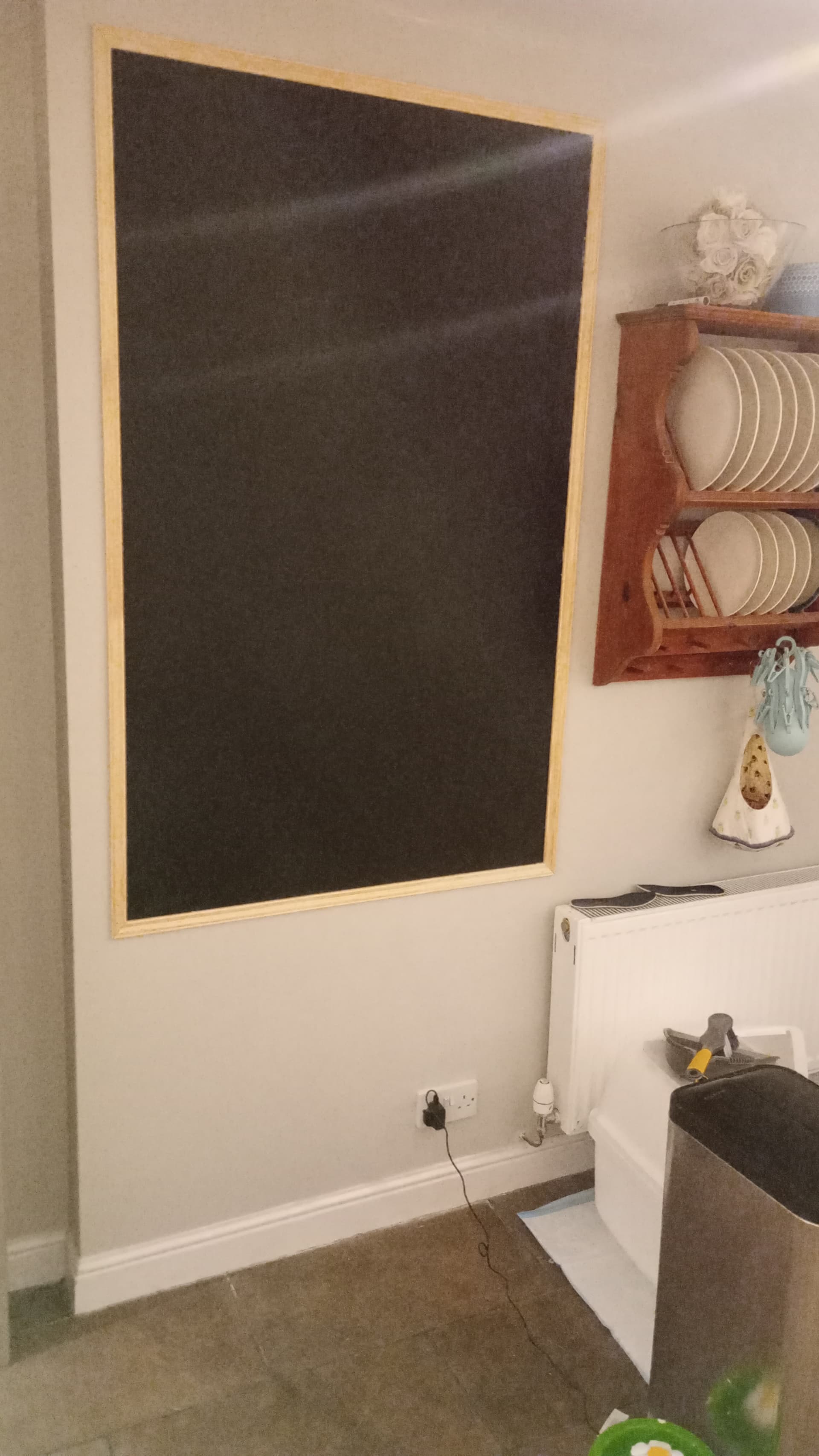 Been tasked to make a chalk board in the kitchen by painting a rectangle and sticking some frame around it. I decided to put a few pins in the wood close to the corners to make better joints. Banged a load in then realised I’m directly in line with the radiator pipes. ![]()