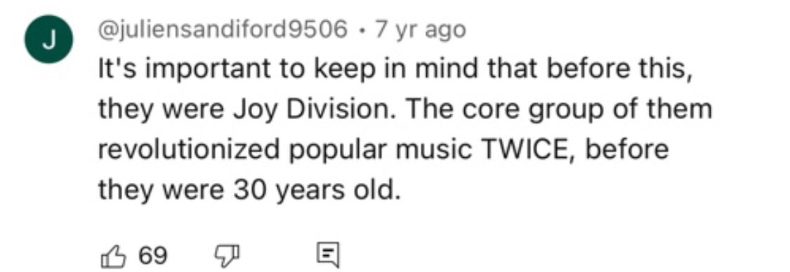 I fucking love the old and early TV slots that Joy Division played, I genuinely rewatch them wondering if my mum was into it when I was a baby haha. Can’t ask though. How does it feel live is well funny (edit - Blue Monday has always been ‘how does it feel’ in my head), same complete shambles. Love them.