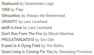 Ha, a lot of it is space ambient music, which is my go-to background music when working, and some other electronic music. If I had to recommend anything from that list, it’d be Sweeping Promises (post punk), and The Beths (indie/pop/punk).