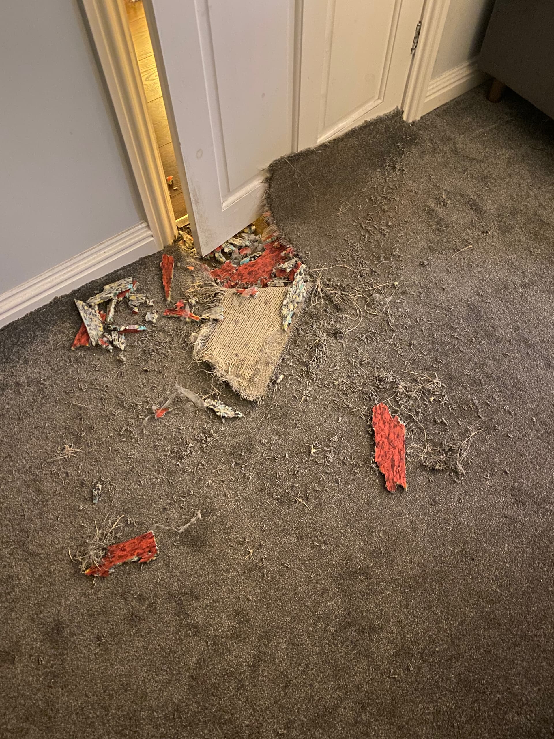 My nause up of the day was getting home to find the dog hated our 18 month old carpet and took it upon himself to start getting it up…