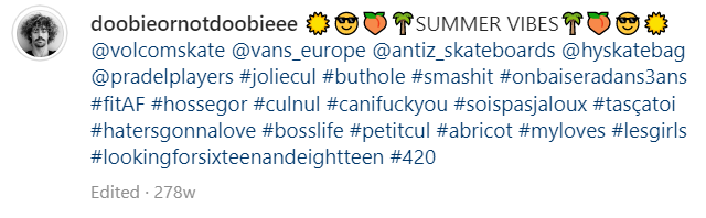 He came to a local comp here a couple winters ago, asked for drags on every zoot, drank off every bottle he saw then somehow got Covid (how surprising), which meant he had to cancel a trip to Africa. He later called my mate who organizes said comp, telling him he was full of shit for letting Covid spread like that or something. My mate said he could call the Vans Europe guys and tell them about his behavior, which seemed to calm him down. Pretty much everybody there hated him.