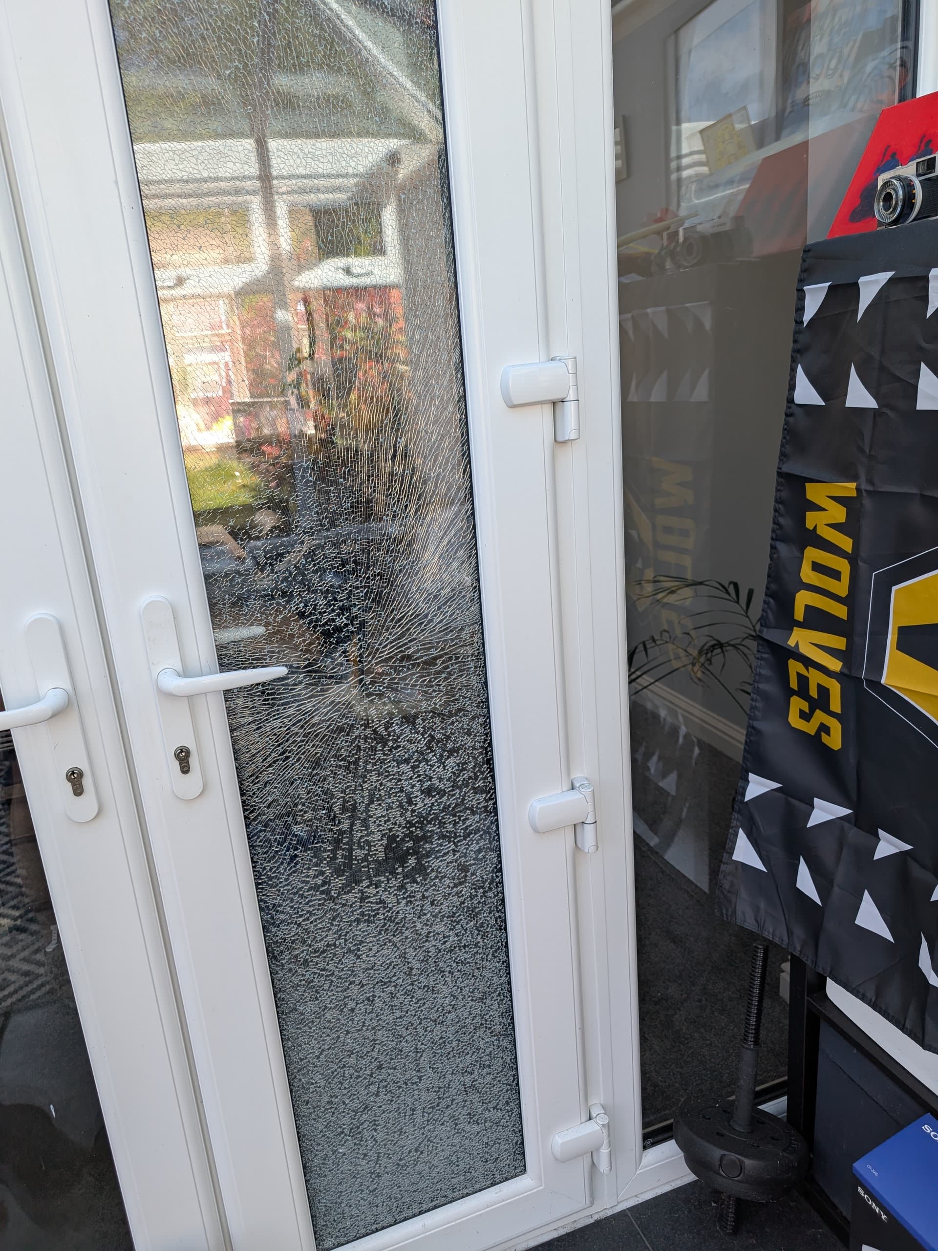 Just came back home for my lunch to find one of the glass pane on the door between the conservatory and living room has shattered. Not sure where to start or whether it’s a door replacement job or if the glass can just be replaced. Urgh.